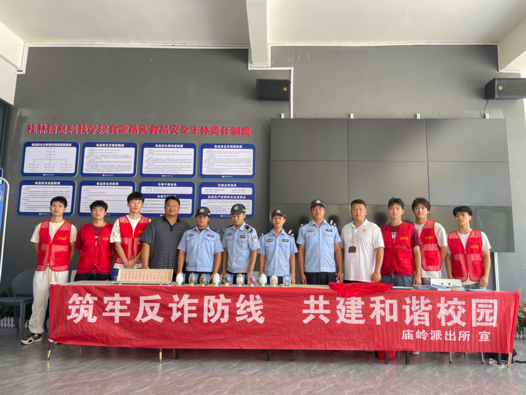 为切实提高师生员工群体预防电信网络诈骗意识,护航大学生健康成长,共建和谐安全的校园环境。9月10日—14日,桂林市公安局庙岭派出所联合我校保卫处、学生发展与服务中心、信息工程学院和商学院在学校紫荆广场共同开展校园反诈等宣传教育活动,筑牢校园“安全墙”。