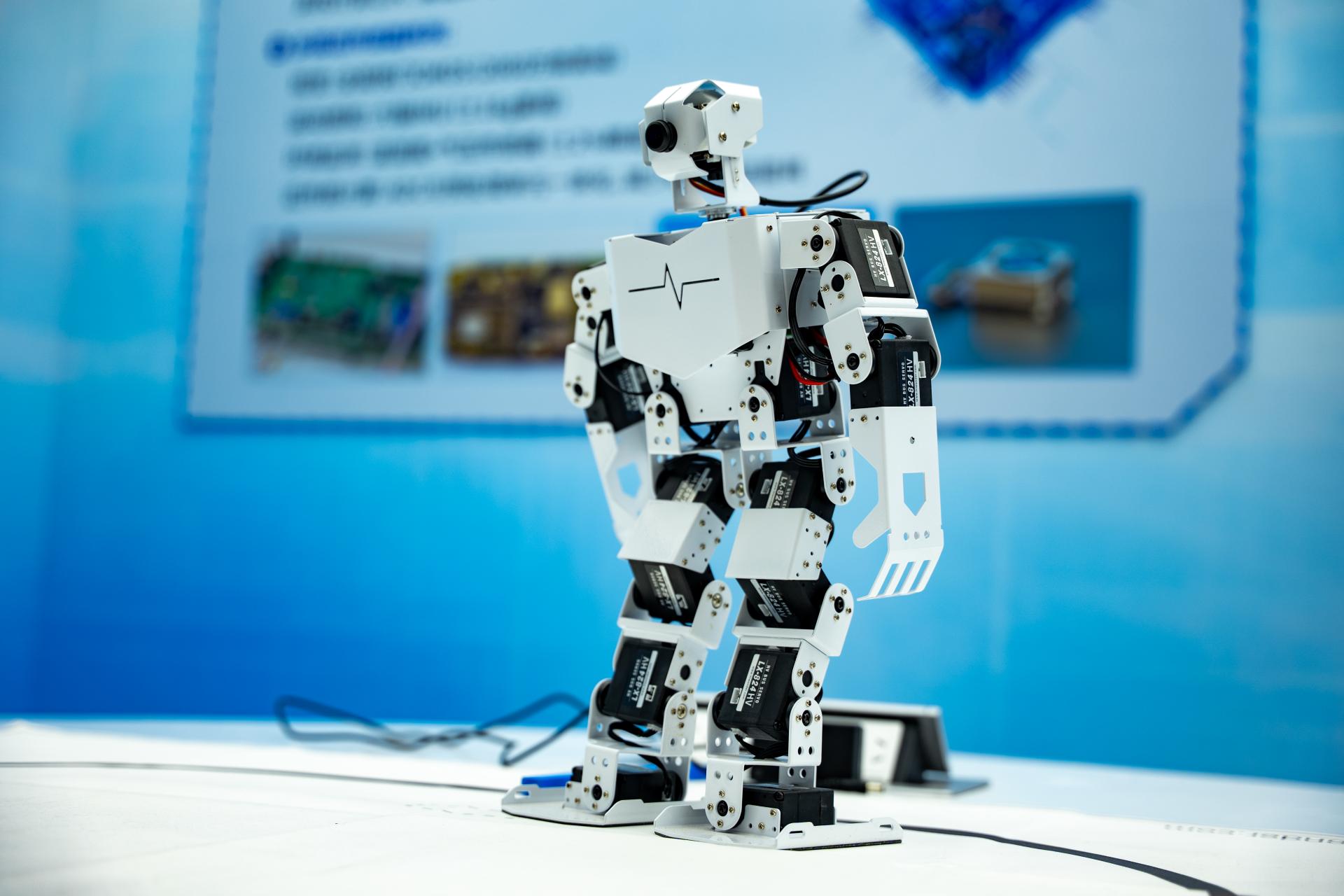 这台智能机器人,是人工智能与机械技术“跨界融合” 的杰作。它的头部摄像头如同 “敏锐双眼”,能实时捕捉周围环境信息;灵活的关节则赋予它多样动作能力 —— 无论是抓取物品、精准定位,还是跟随指令完成简单互动,都能轻松应对。它不只是一件科技展品,更预示着未来的 “人机共生” 图景:或许在不久的将来,智能机器人会走进家庭、医院、工厂,承担起陪护、护理、生产等工作,为生活带来更多便利与可能。在这里,您能近距离感受 “机器有智慧” 的奇妙,畅想人工智能与机械技术融合的无限未来。