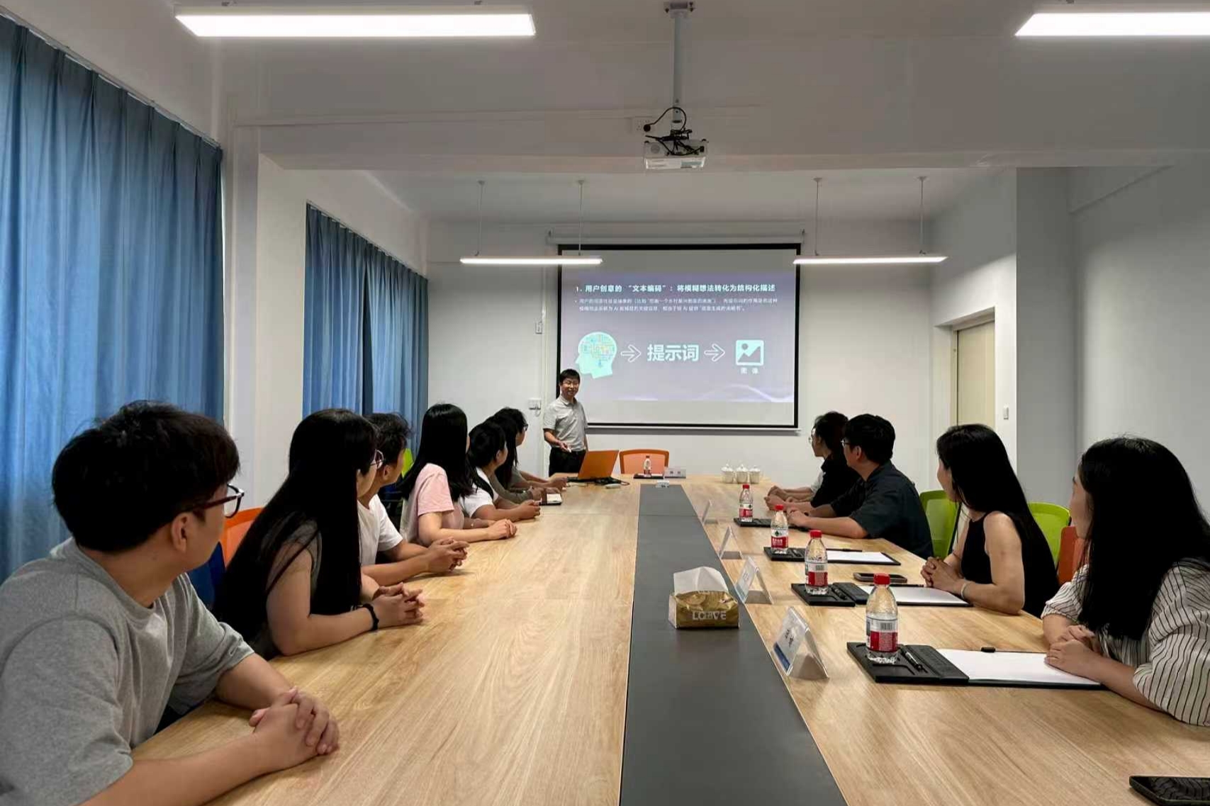 2025年7月10日,为进一步推动人工智能与创意设计学科的深度融合,提升人工智能通识课的教学质量与实践价值,创意设计学院特别邀请校外专家韩剑教授、王宏昆教授开展“人工智能通识课‘交叉融合’模块案例建设” 专项指导工作。创意设计学院院长黄晓瑜、副院长李辉及人工智能通识课课程组骨干教师共同参与了此次指导交流活动。