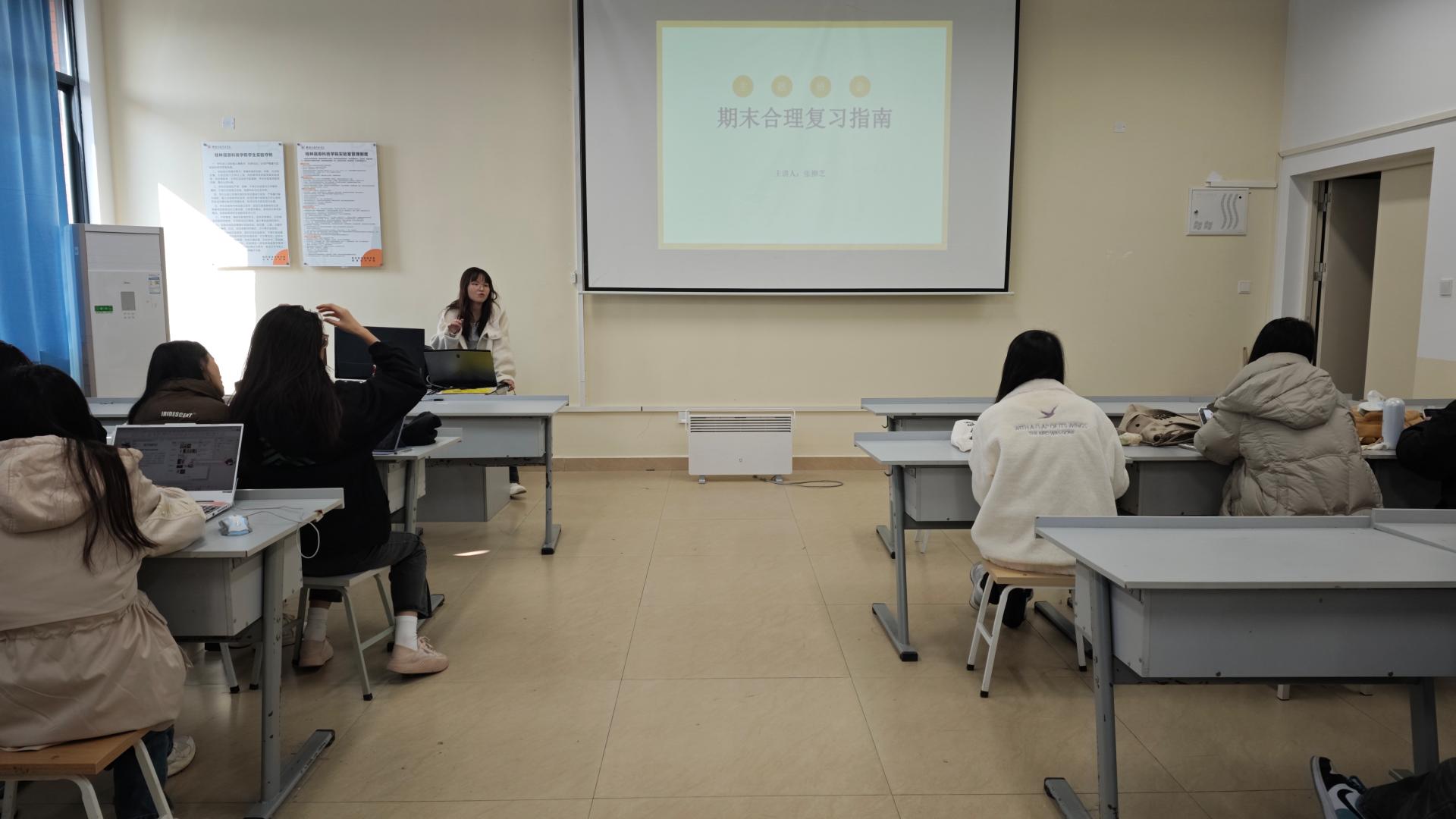 12月19日,随着期末考试的临近,创意设计学院2023级产品设计一班在德远楼E303教室举办了以“期末合理复习指南”为主题的班会活动,此次班会为同学们点亮复习之路,指引方向。本次班会由张柳芝老师主持,全体学生参与班会。