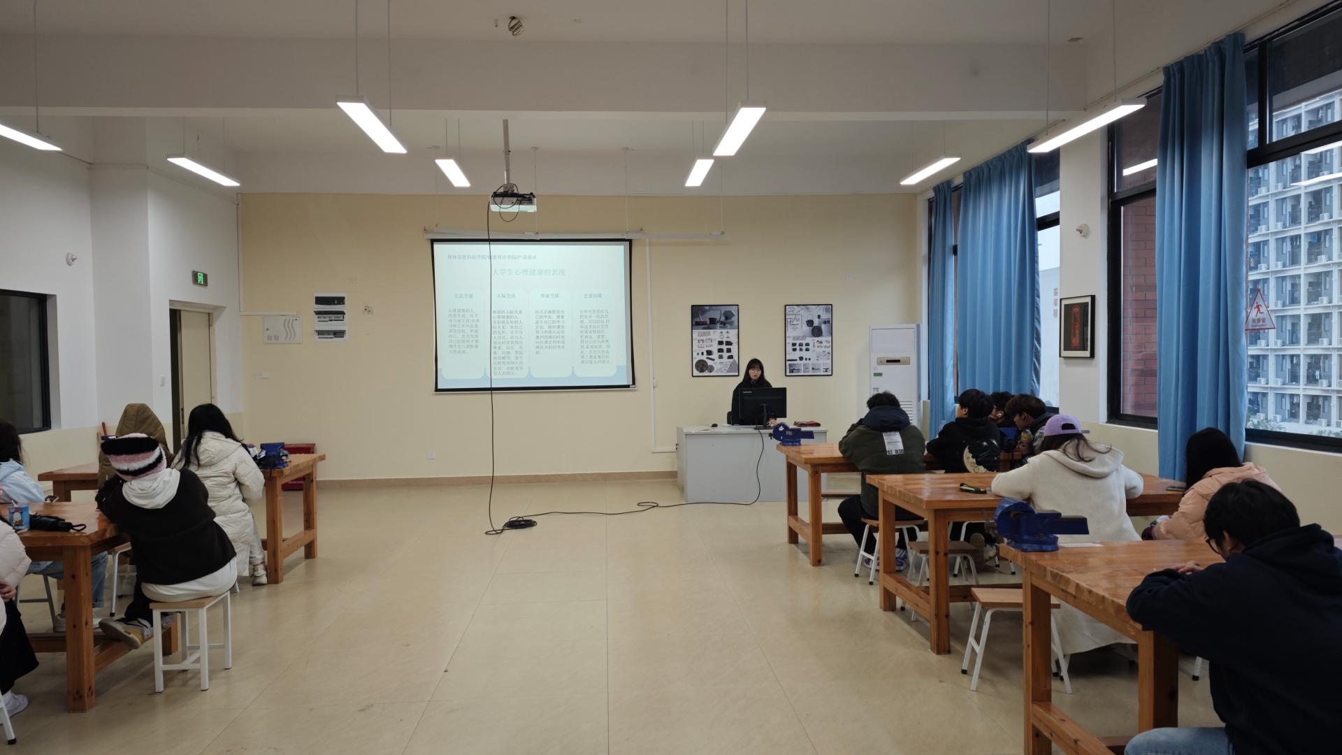 为引导大学生树立正确的心理健康观念,提升心理调适能力,提高心理健康水平,12月6日,创意设计学院24级产品设计2班举办了一场以“大学生心理健康教育”为主题的班会。此次班会由班主任张柳芝主持。