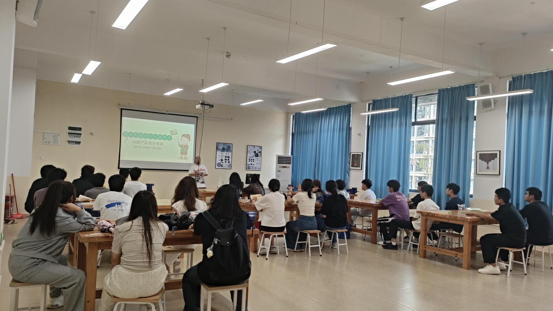 在即将到来的国家假期之际,24级产品一班于今日成功举办了以“安全教育”为主题的班会。本次班会由苏锐老师主讲,24级产品一班全体同学参与。