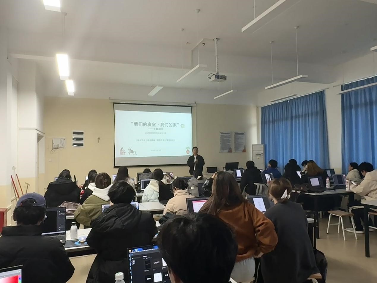 为了提高同学对宿舍生活的重视和改善宿舍环境,23级视觉传达设计专业23552001班、23552002班、23552003班分别在12月12日、13日分批次开展了以"我们的寝室·我们的家"为主题的班会活动。班会由班主任蔡佳航老师主持。