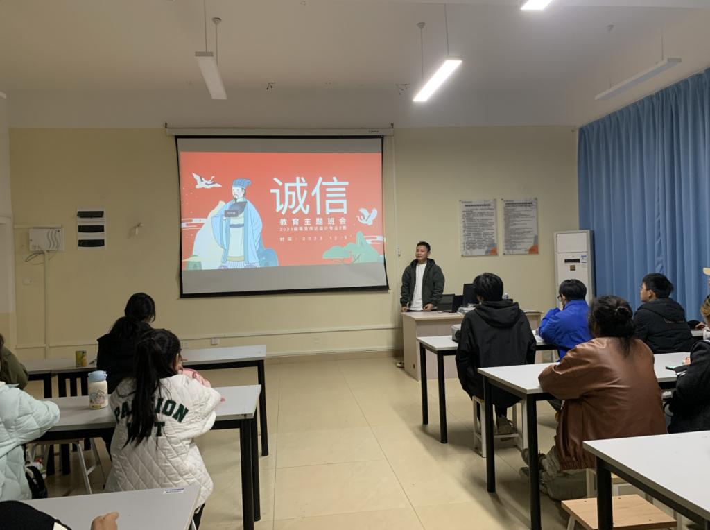 随着期末考试的临近和考试科目的增多,为了加强同学们的考试诚信意识,23级视觉传达设计专业23552001班、23552002班、23552003班分别于12月4日、12月5日和12月12日开展了以"诚信"为主题的班会活动。班会由班主任蔡佳航老师主持。