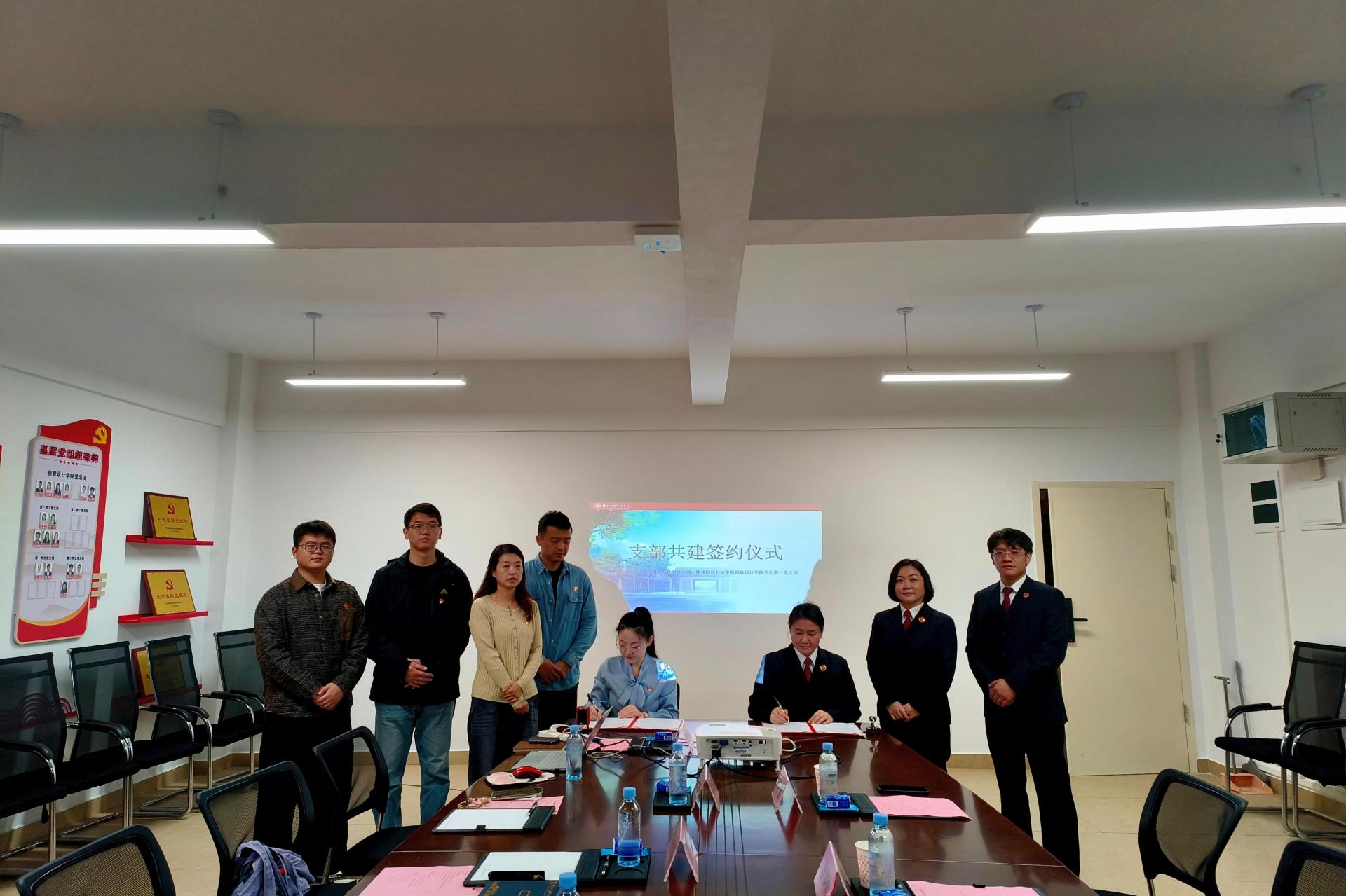 为搭建资源共享平台,达成优势互补,探索“党建+美育+法治”融合发展的全新模式,11 月 7 日,桂林信息科技学院创意设计学院第一学生党支部与桂林市临桂区人民检察院在职党支部正式签订党建共建合作协议。