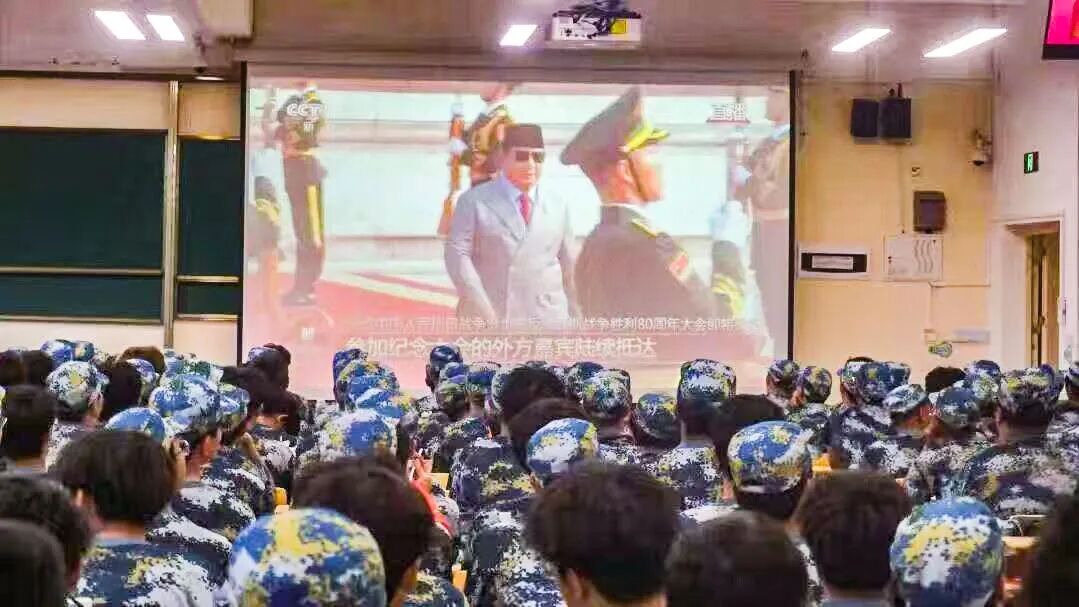 9月3日上午,我校组织广大师生观看纪念中国人民抗日战争暨世界反法西斯战争胜利80周年阅兵式直播。2025级学生军训全体参训师生在行健楼体育馆、F107报告厅等场所集体观看纪念大会实况转播,校内各单位、学院设立分会场同步收看纪念大会,师生们共同见证这一承载着历史与荣耀、展示着强国强军风采的庄严时刻。
