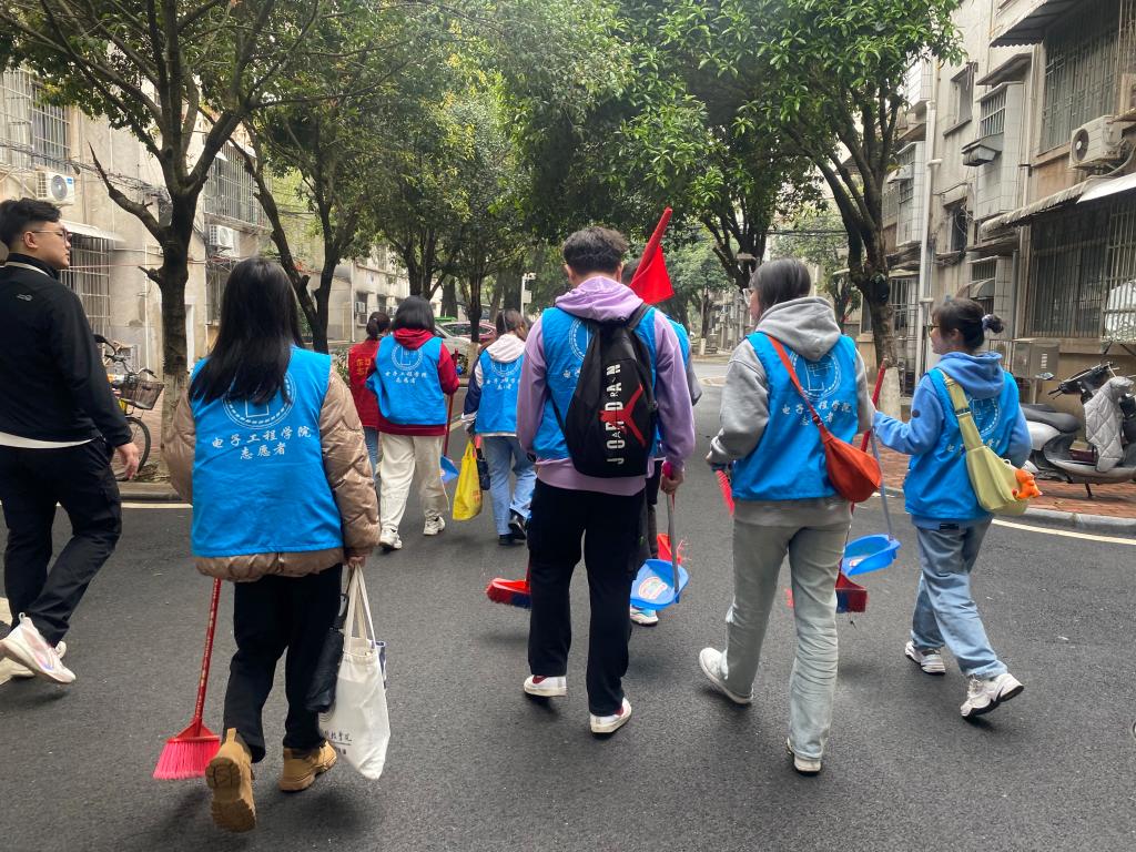 活动中,学生志愿者与汇通社区党员志愿者一起手持扫帚、铁锹等工具,清扫落叶和垃圾。清扫过程中,每一位志愿者充分发扬“不怕苦、能吃苦”的优良作风和“不怕脏、不怕累”的实干精神。