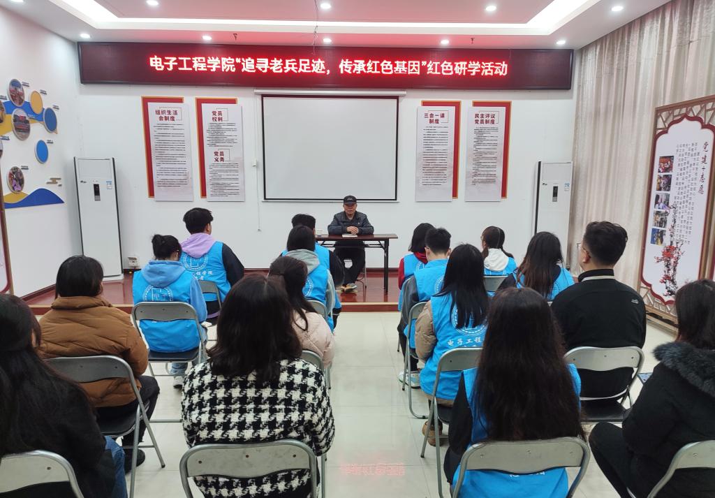 3月21日,电子工程学院“蓝色青风”志愿服务团队联合汇通社区党委开展“追寻老兵足迹,传承红色基因”红色研学活动。