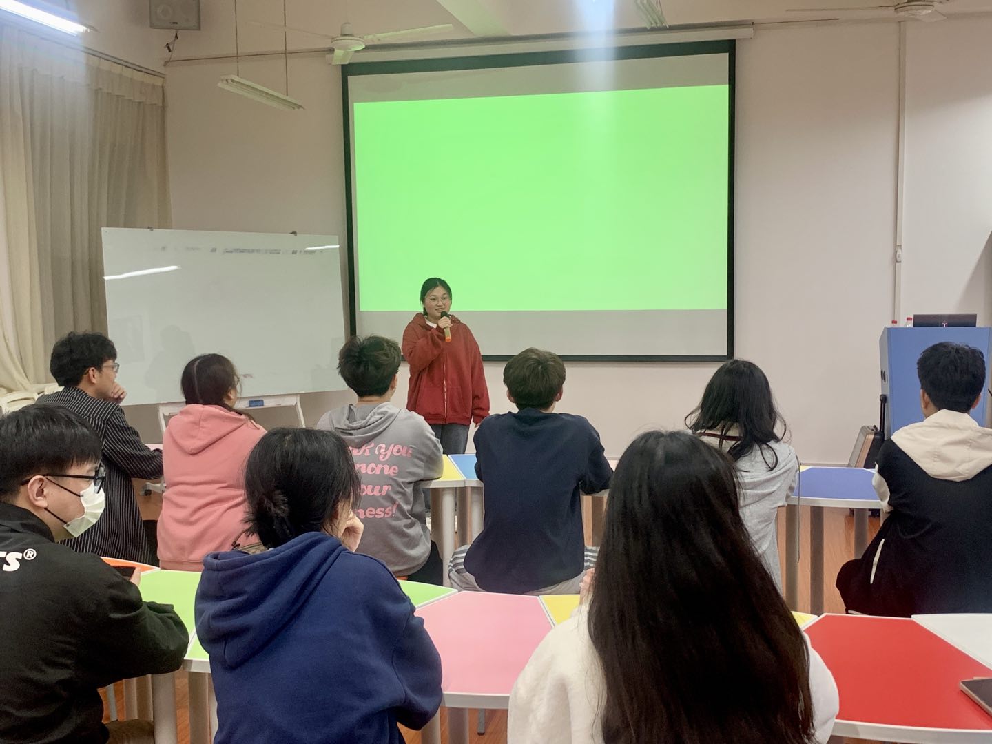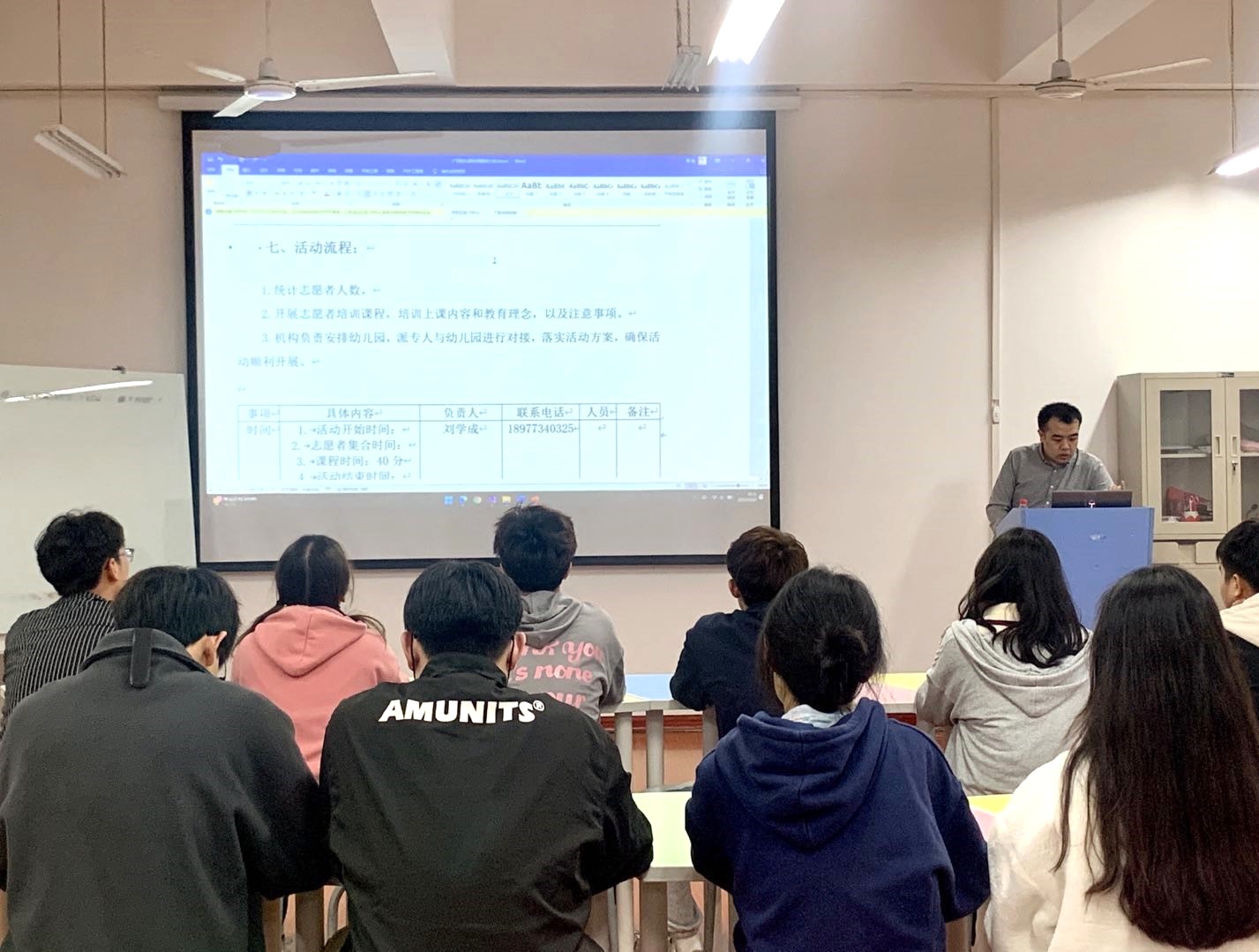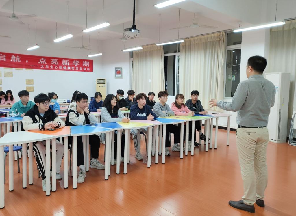会上,宣讲团成员们自由分组,以如何进行课前布置与策划为主题进行讨论,再由各小组代表上台演讲。刘老师就成员们的表现情况提出改进意见,强调了成员们在给小朋友上课前,应该做好相应的课前准备工作,找好所需要的素材,明确好各成员之间的分工。