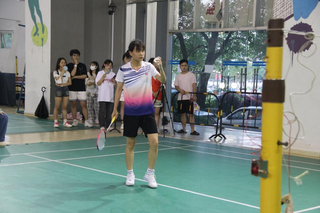赛场上,电子工程学院的运动员全神贯注,斗志昂扬,在高强度的羽毛球对抗赛中挥洒汗水、竞相争逐;扑球、搓球、放网、挡网、劈杀、扣杀等羽毛球技术,一招一式尽显功底,处处体现着他们精湛的球技。