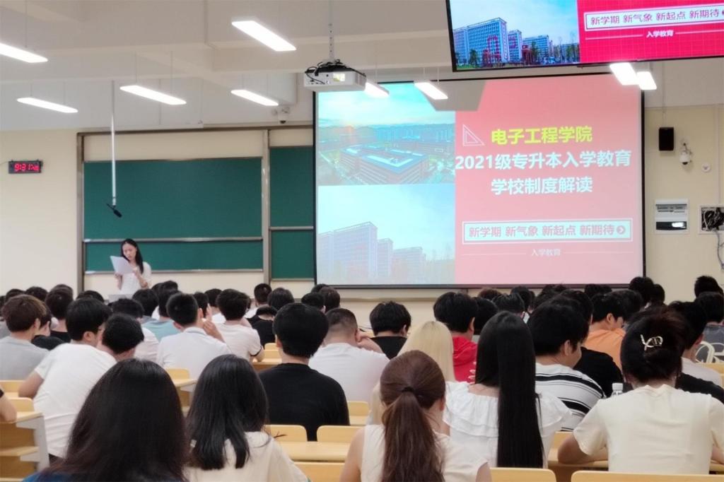 为引导新生进一步了解学校规章制度,提高新生的纪律意识和安全意识,帮助新生更好地适应大学生活。8月27日上午,电子工程学院在5409教室,开展2021级专升本新生学校管理规定解读专题教育,本次会议由2021级专升本辅导员李菲菲主讲,全体专升本新生参加会议。