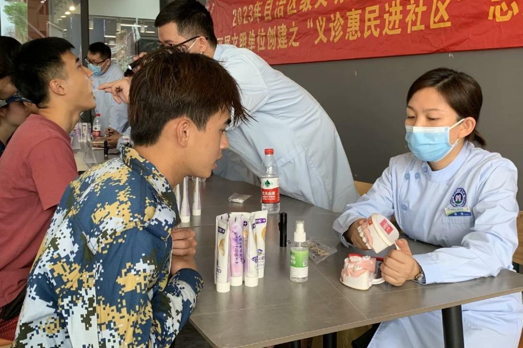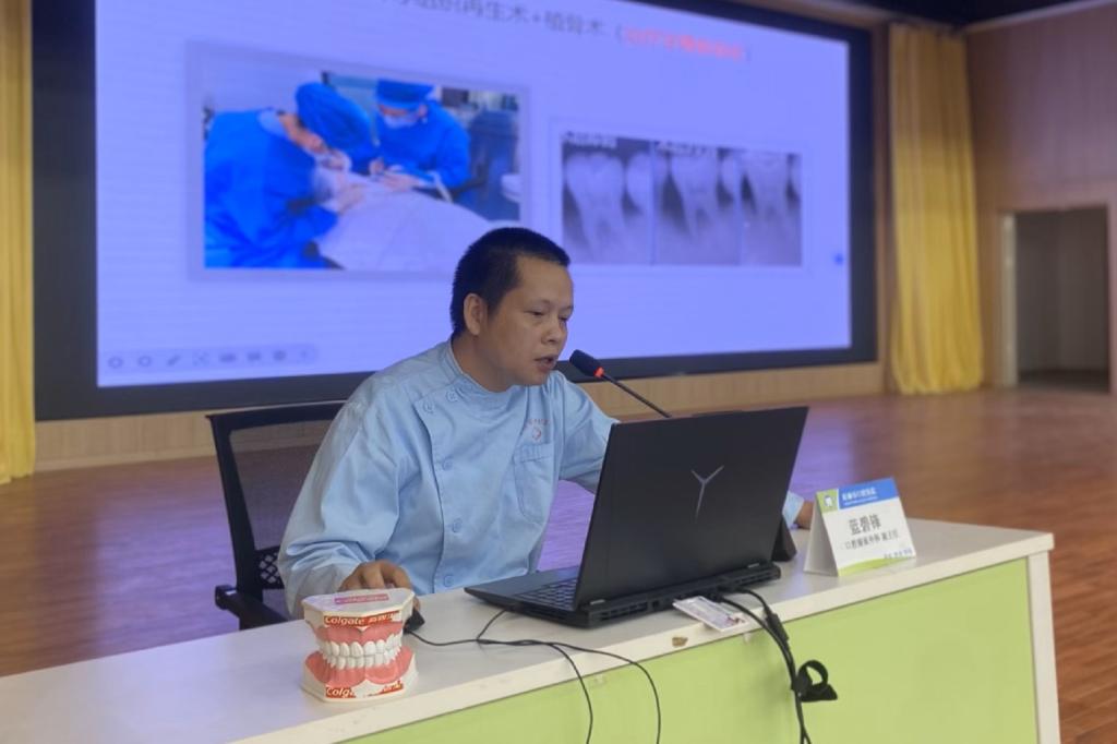 此次活动在食堂门口进行义诊,许多同学前来进行免费的口腔检查。桂林口腔医院的专业医生们仔细检查每一位同学的牙齿,耐心地解答了他们有关口腔健康的问题,并根据检查情况提供了专业的建议和指导。与此同时,口腔领面外科副主任蓝碧锋在F107报告厅为我校全体师生进行了口腔健康知识讲座,以深入浅出的方式向同学们介绍了关于口腔健康的知识、如何正确刷牙以及如何选择合适的牙膏和牙刷等。不仅如此,桂林口腔医院特为我校全体师生准备了精美的礼品。