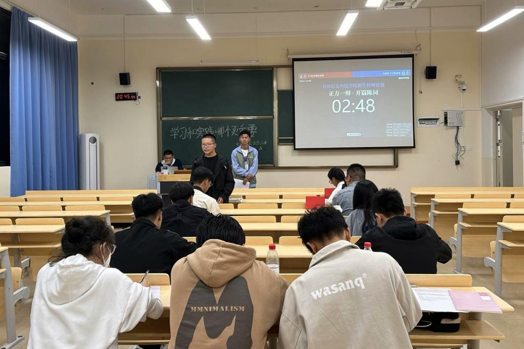 9月27日至10月10日,电子工程学院在D101、D102、D103、D112、D113教室开展“新生杯”辩论赛初赛,本次比赛由学院分团委副书记朱济亨主持,特邀学校辩论赛队成员担当评委,2023级各班辩手及学生代表共同参与。