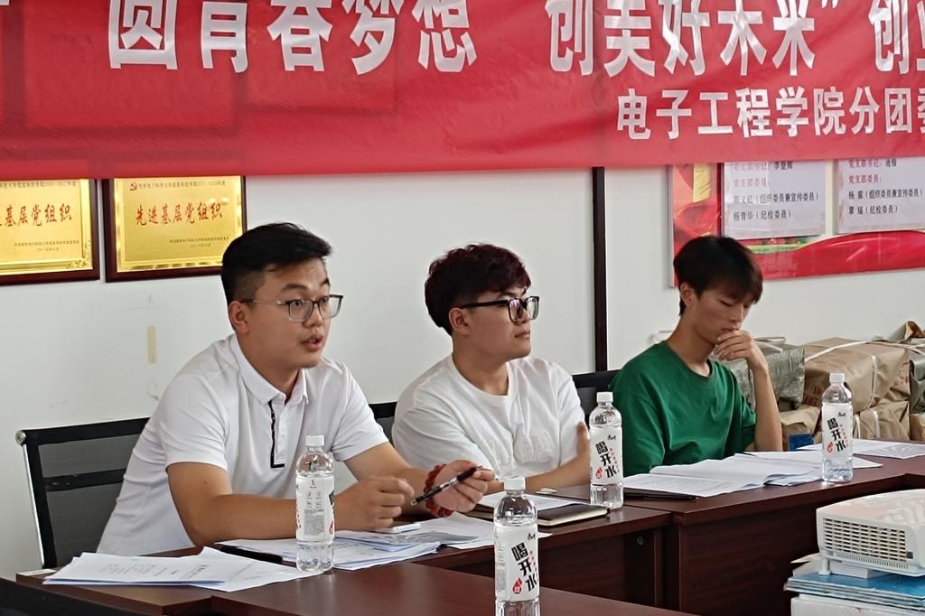 为了进一步促进我院创业、就业教育,加强学生对社会的感知和体验,6月13日,电子工程学院分团委学生会在41502活动室开展勇往职前“圆青春梦想,创美好未来”创业比赛。本次活动邀请电子工程学院21级辅导员、分团委副书记朱济亨老师,21级自动化二、三、四班班长作为评委。