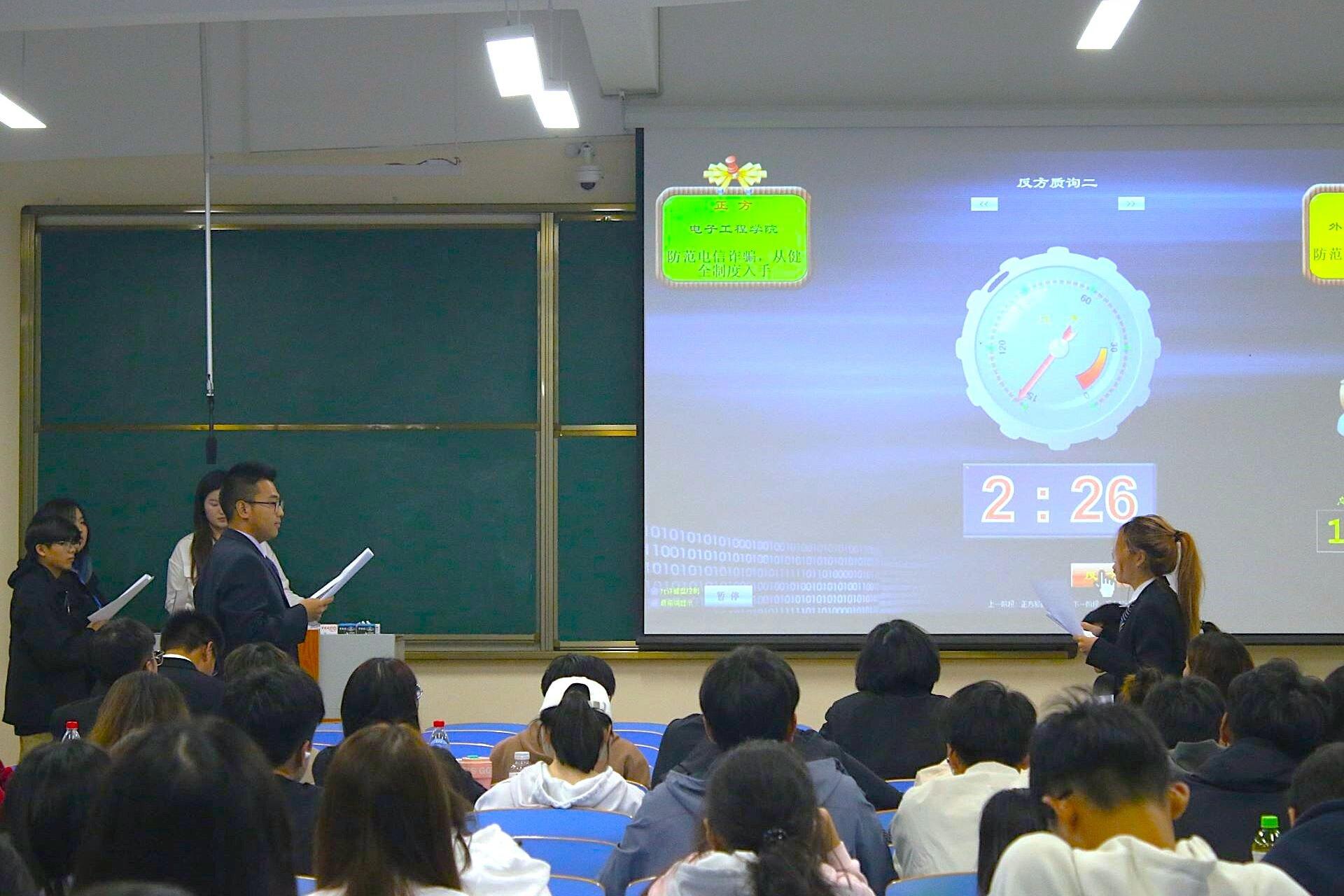 为加强学风建设,提升同学们的逻辑思维与辩论能力,10月30日和11月3日晚,电子工程学院先后和外贸与外语学院、机电工程学院于明智楼D508举办“宏词论道,弘辩华章”主题辩论赛。