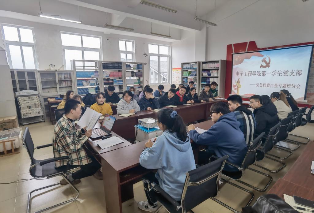 为加强党员档案管理工作,助推党建工作发展,11月15日-22日,电子工程学院第一、第二、第三学生党支部分别在41502党员活动室开展党员档案自查专题研讨会。会议由各支部书记主持,支部全体党员参加会议。