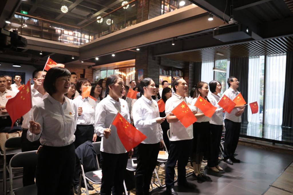 活动最后,在场的全体成员以快闪的形式,齐唱歌曲《在灿烂阳光下》,借此激励广大党员同志不忘初心、牢记使命,向先辈先烈学习,从中汲取榜样力量,以更加优异的成绩迎接党的百年诞辰。
