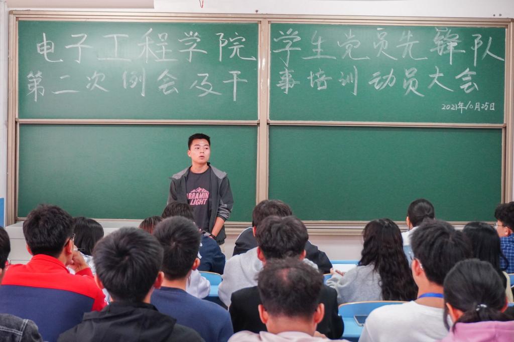 为更好地促进各部门的协调发展,10月25日中午,电子工程学院学生党员先锋队在32307教室召开干事培训动员大会,先锋队全体队员参会。
