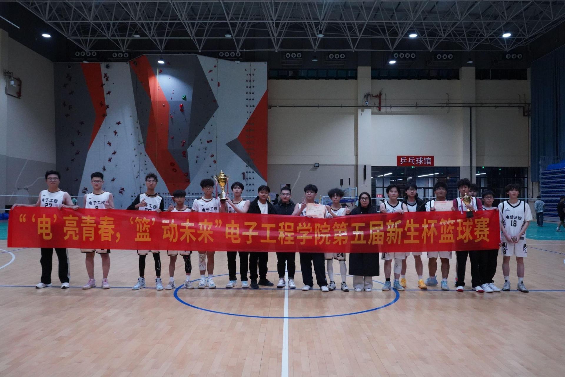 为营造积极健康的校园体育氛围,增强学生体质、培育团队精神,电子工程学院举办了以“电”亮青春,“篮”动未来为主题的第五届“新生杯”篮球赛。历经数周激烈角逐,赛事于12月2日顺利落下帷幕。