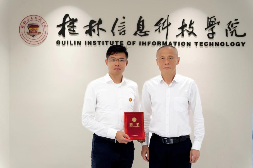 9月6日,学校在知行楼8楼举行聘任仪式,聘任蒋鑫博士为我校客座教授。校长梁丁丁为蒋鑫博士颁发聘书,副校长陈玲萍、校长助理韩剑及人事处、电子工程学院负责人出席聘任仪式。