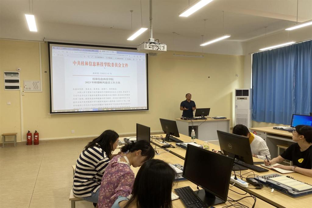 会上,黄书记带领全院教职工共同学习了《桂林信息科技学院师德师风负面清单和失范行为处理办法》和《桂林信息科技学院2023年师德师风建设工作方案》、《新时代高校教师职业行为十项准则》的相关内容,针对近来在学校发生的一些典型案例进行分析。他指出,学院要大力弘扬无私奉献的高尚师德,提高教师职业道德素养,结合工作实际抓好落实,着力解决师德师风建设中存在突出问题,扎实开展师德师风建设工作。