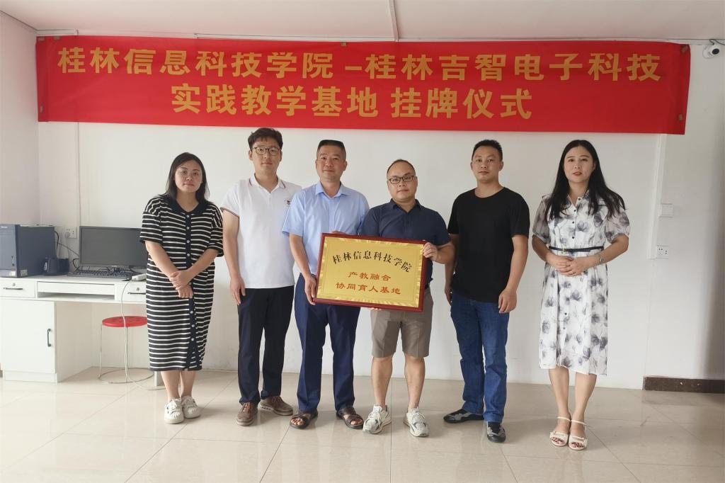 为落实我校产教融合、校企合作提升的新型人才培养模式,建立长效育人机制,加大专业设置与企业需求进一步高度匹配,9月11日下午,电子工程学院与桂林市吉智电子科技有限公司共建“产教融合实践教育基地”授牌仪式在吉智电子会议室举行。吉智电子科技领导梁子秀、电子工程学院院长韩桂明、教研室主任王涛、辅导员覃瑶、校企合作秘书杨雪娜出席仪式。