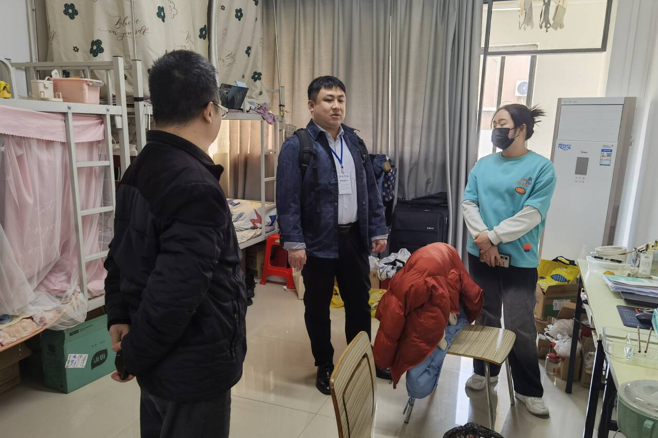 走访调研中,谢长远对企业的大力支持表示感谢,先后参观企业产品展厅、学生实习工作室以及学生宿舍,并与我院实习学生进行亲切交流。