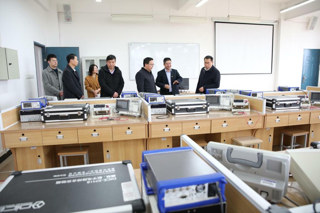 汇报会结束后,专家组在甘勇校长、陈智勇副校长的陪同下,实地考察了四个重点专业的实验室建设情况,详细查阅了各专业的支撑材料及审计报告等材料,并与参会人员进行了交流座谈。