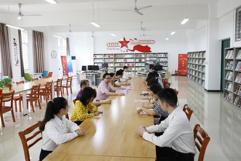 仪式上,党委书记甘勇,党群事务部部长王南萍共同为基地揭牌。随后,党群事务部部长王南萍、马克思主义学院副院长李琳玲、图书馆主管彭薇分别简单汇报了基地建设的工作思路和安排。