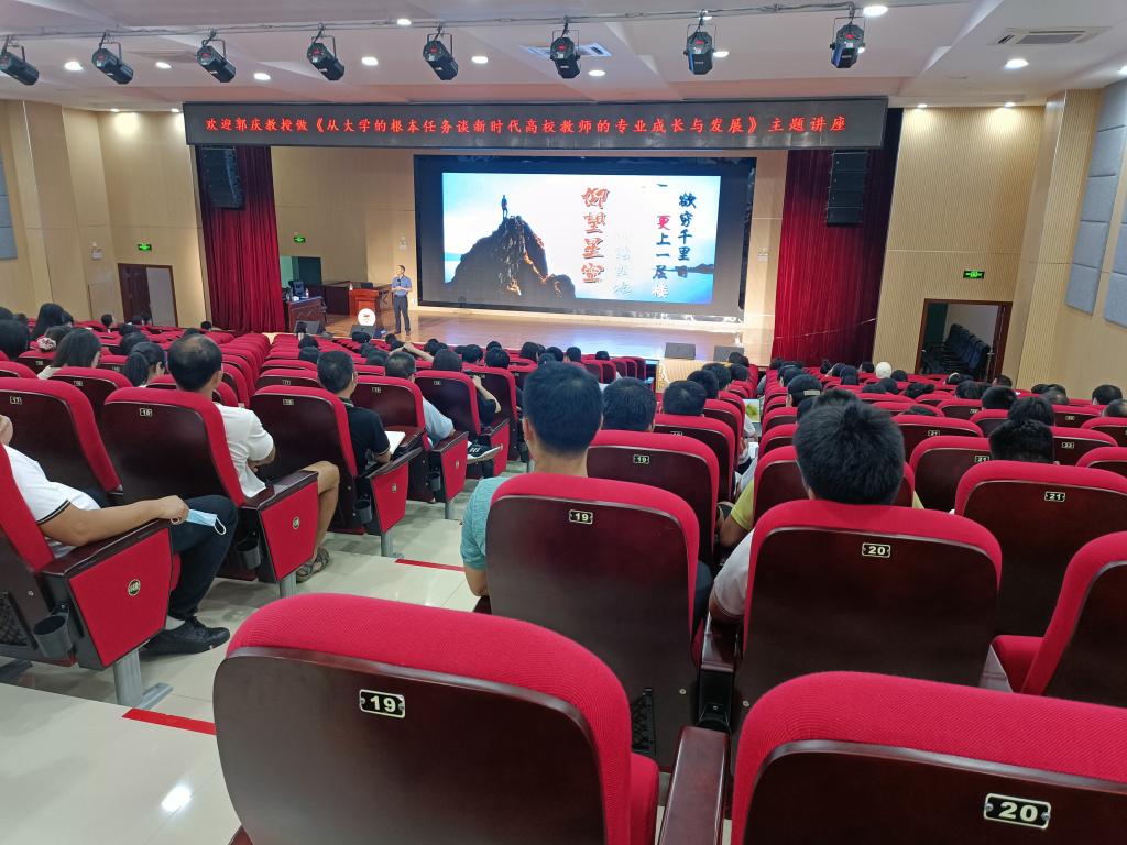 为促进教师教学能力及教学水平的提升,7月1日下午,我校邀请全国模范教师,广西教学名师,桂林电子科技大学郭庆教授在51206报告厅开展了《从大学的根本任务谈新时代高校教师的专业成长与发展》的专题讲座。各教学单位专任教师及辅导员参与学习。