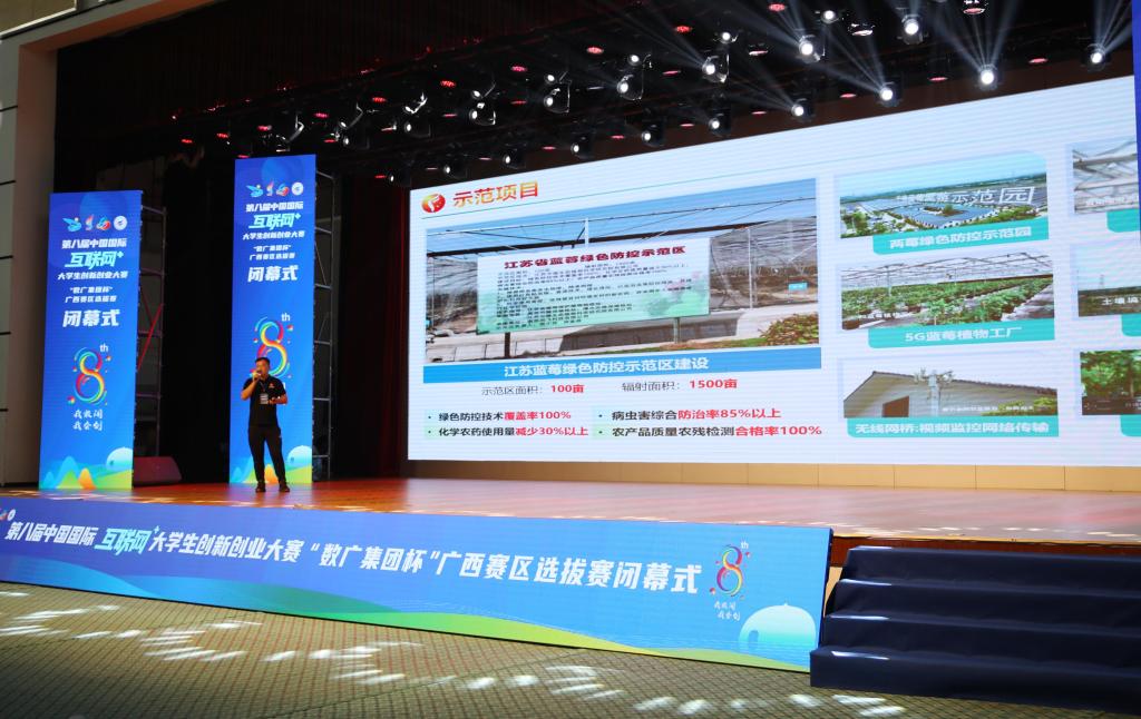 7月12日上午,在第八届中国国际“互联网+”大学生创新创业大赛广西区选拔赛闭幕式上,我校“红旅赛道”项目《精耕细作、不负所托”——尚飞科技农业全托管服务先行者》作为全区“红旅赛道”代表现场上台展示,是全区上台路演分享的四所高校之一,受得广大师生的关注和点赞。