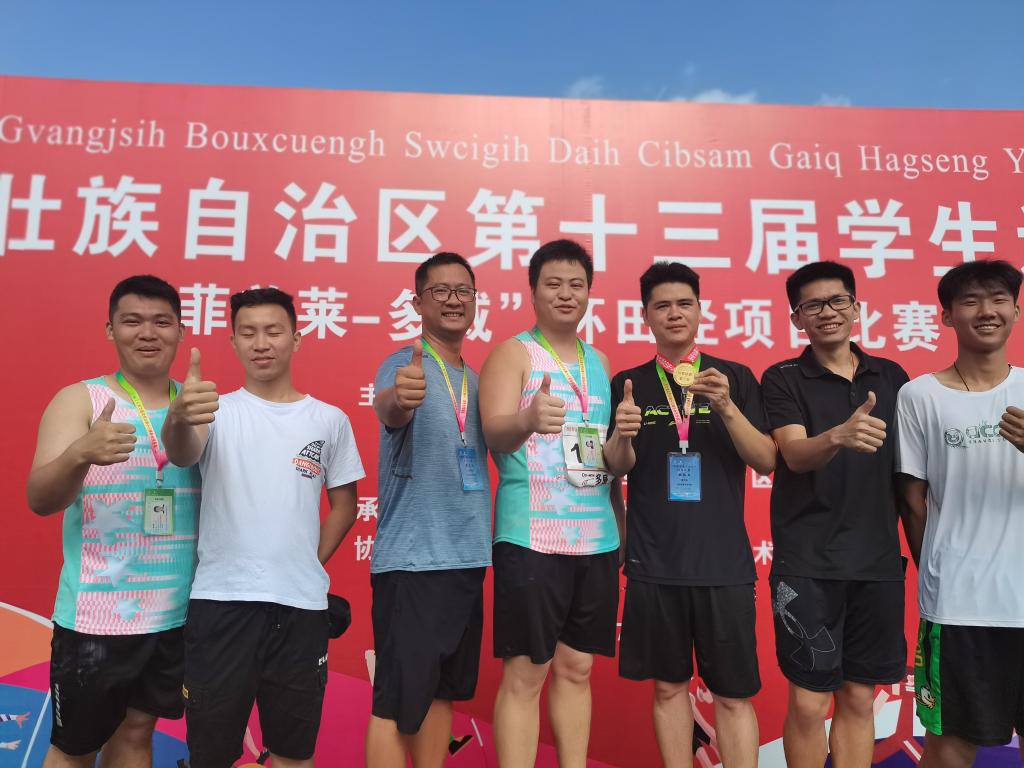 7月8日至15日,由广西壮族自治区教育厅、体育局等单位主办,广西民族大学承办的广西壮族自治区第十三届学生运动会田径比赛在广西民族大学相思湖校区顺利举行。由体育与健康学院薛伟佳、黄国阳、房金华和刘卓四位教师担任教练的田径代表队(卢宏奇、刘艳艳、肖凤健、曾德鹏、卢栎如、黄世佳、王岳卿、杨鹏和卢栎如等9名同学)参加了本次比赛,斩获包括冠军1项、亚军1项在内的共4个奖项的好成绩,在全区同类院校中名列前茅。
