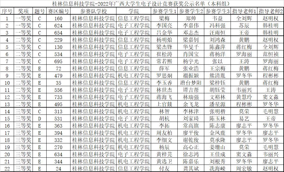 近日,由广西区大学生电子设计竞赛组委会举办的2022年广西大学生电子设计竞赛传来喜报,我校师生在此次竞赛中荣获多项佳绩。