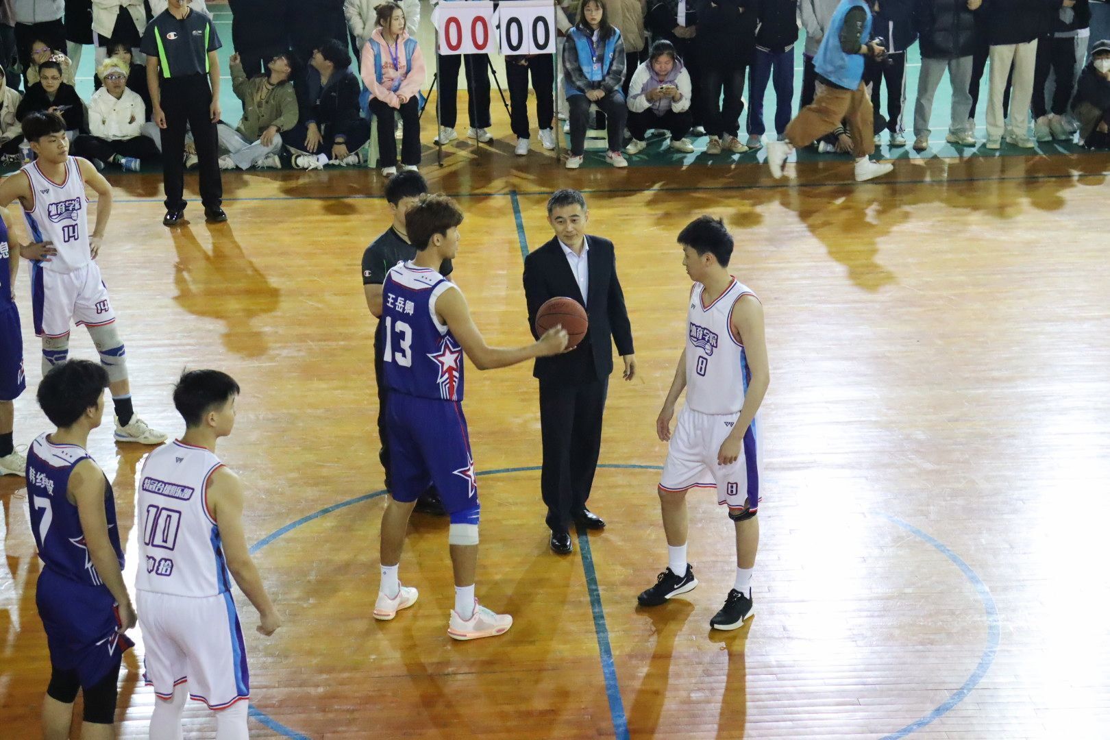 开幕式在大学生艺术团青春活力的舞蹈《奔跑吧青春》中拉开序幕。开幕式上,裁判员代表叶镇宇和运动员代表周鑫分别代表裁判员和运动员进行宣誓,关永康老师受赛事组委会委托宣布赛事仲裁组名单。开幕式后,“三走”体育民传文化月男篮小组赛揭幕战正式拉开帷幕,并由李飞助理为揭幕战开球。各参赛队队员迅速投入比赛,在场上你争我夺,双方争夺异常激烈,观众情绪高涨,欢呼声、掌声此起彼伏,现场气氛十分活跃。最终,体育与健康学院22级代表队取得了揭幕战的胜利。