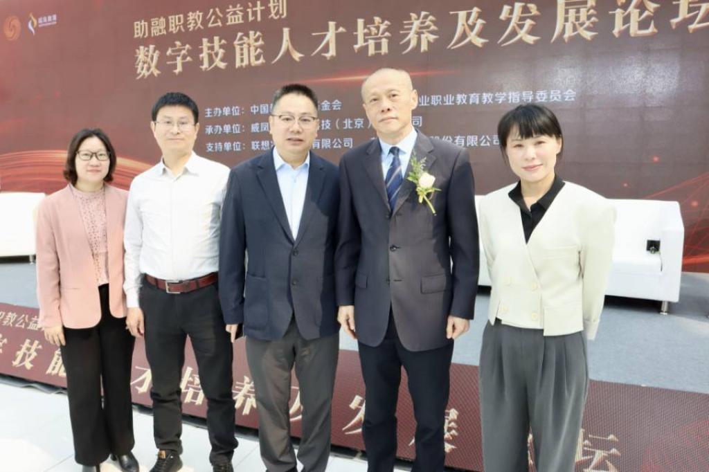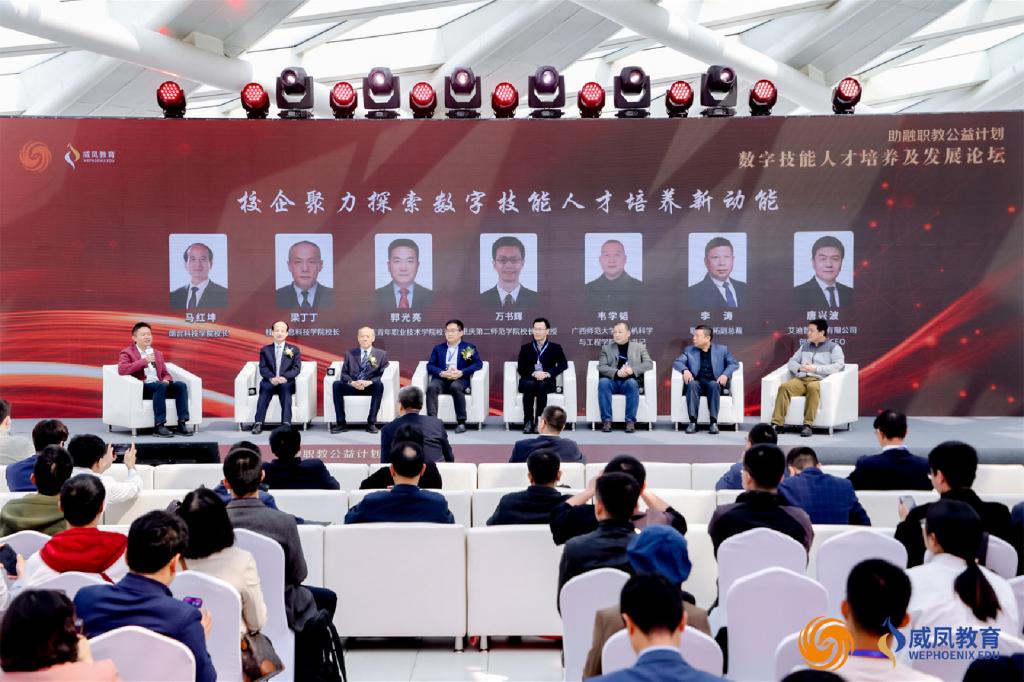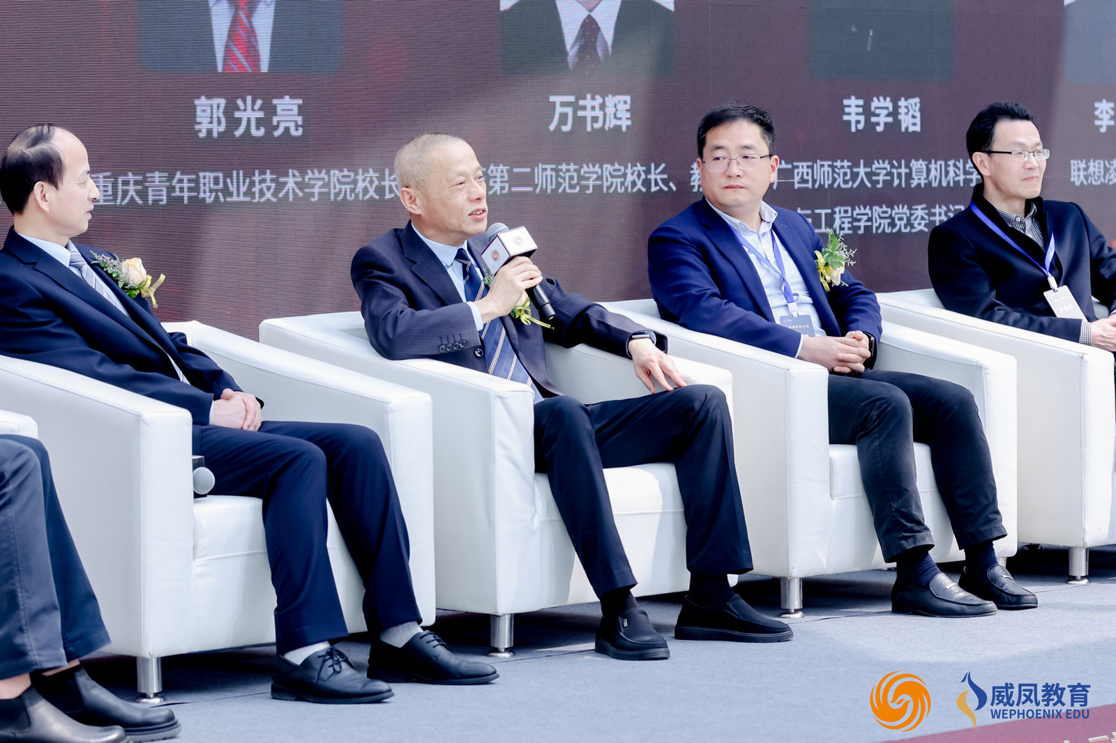 论坛上,我校校长梁丁丁与广西师范大学、烟台科技学院、重庆青年职业技术学院、联想凌拓科技有限公司、艾迪普科技公司等校企领导就“校企聚力探索数字技能人才培养新动能”、“数字化赋能职业教育新生态”主题展开研讨,共同探究职业教育数字化转型和改革中的新观察、新思考和新实践。