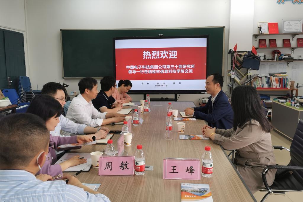 为进一步拓宽毕业生就业渠道,加强校企合作,提升就业质量,推进我校高水平应用型人才培养,4月17日下午,中国电子科技集团公司第三十四研究所(简称34所)人力资源处经理邓生太、招聘主管刘洋来校交流,就深化校企合作事宜进行洽谈。学校副校长陈智勇,信息工程学院、商学院相关负责人参会。