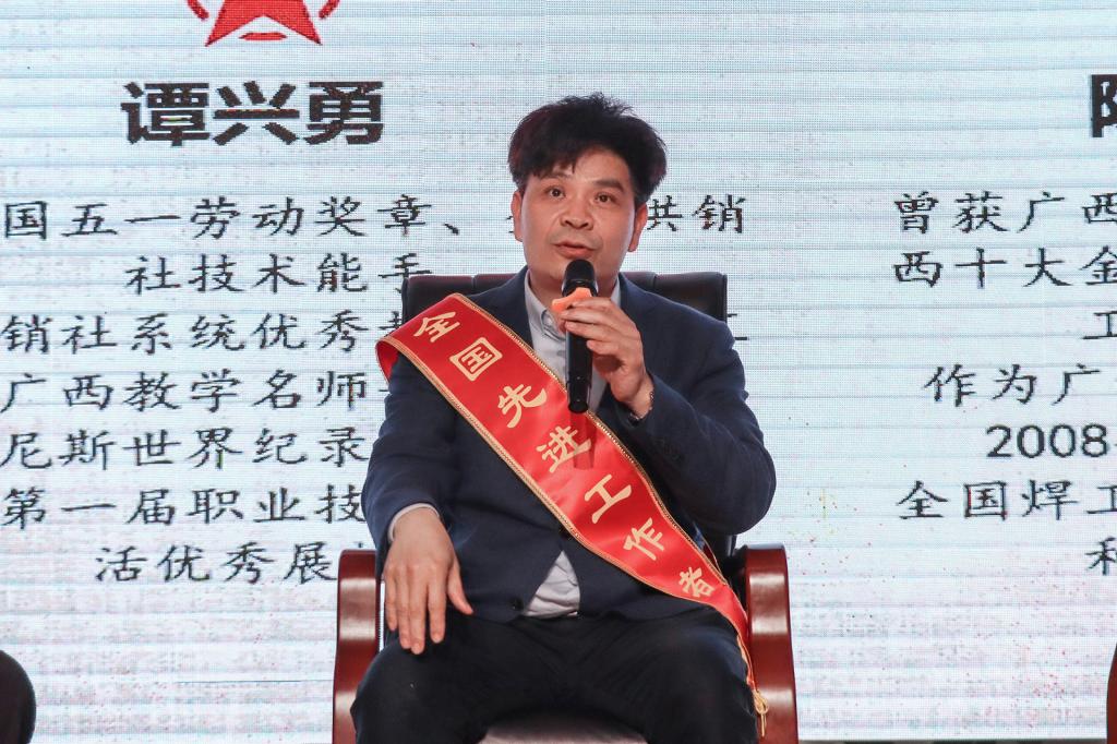 在采访来自桂林石油六公司、曾获“全国劳动模范”的电焊高级技师陈君龙时,他谈起了自己20多年的电焊工作经历,并分享了个人“快枪手四步伐”焊接法的工作成效。现场同学们表示,作为一个迎难而上的技术能手,陈工能和工友们一起成立了创新工作室,并开发和推广了焊接技术成果奖100多项,这些成果都来源于他多年来对电焊工作的热爱和坚持。