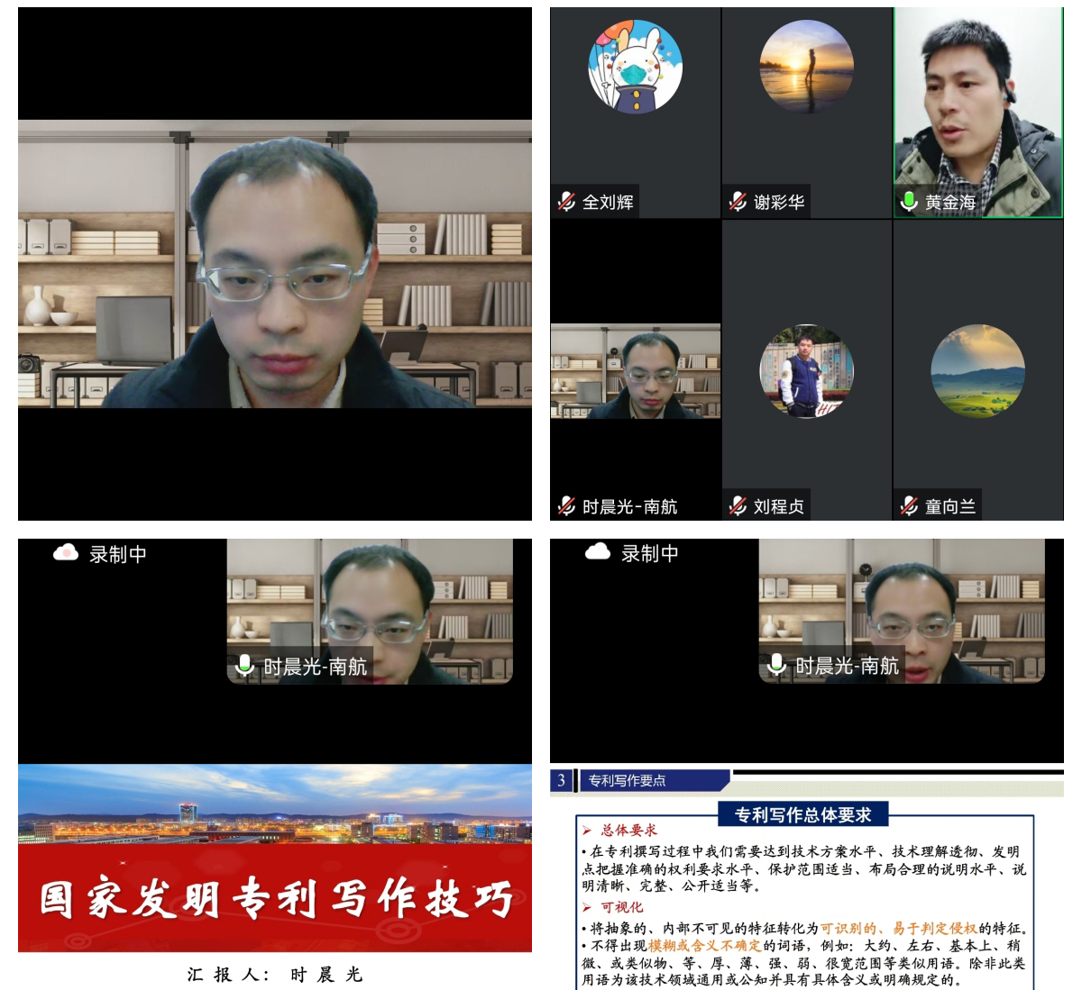 为调动学校教职工的发明创造积极性,保护知识产权,维护学校合法权益,12月4日晚,南京航空航天大学电子信息工程学院时晨光博士应邀为我校教师做题为“国家发明专利写作技巧”的线上讲座。主持、参与各级各类科研项目的老师和其他感兴趣的老师参加了讲座,讲座由教务科技处和电子工程学院相关负责老师主持。
