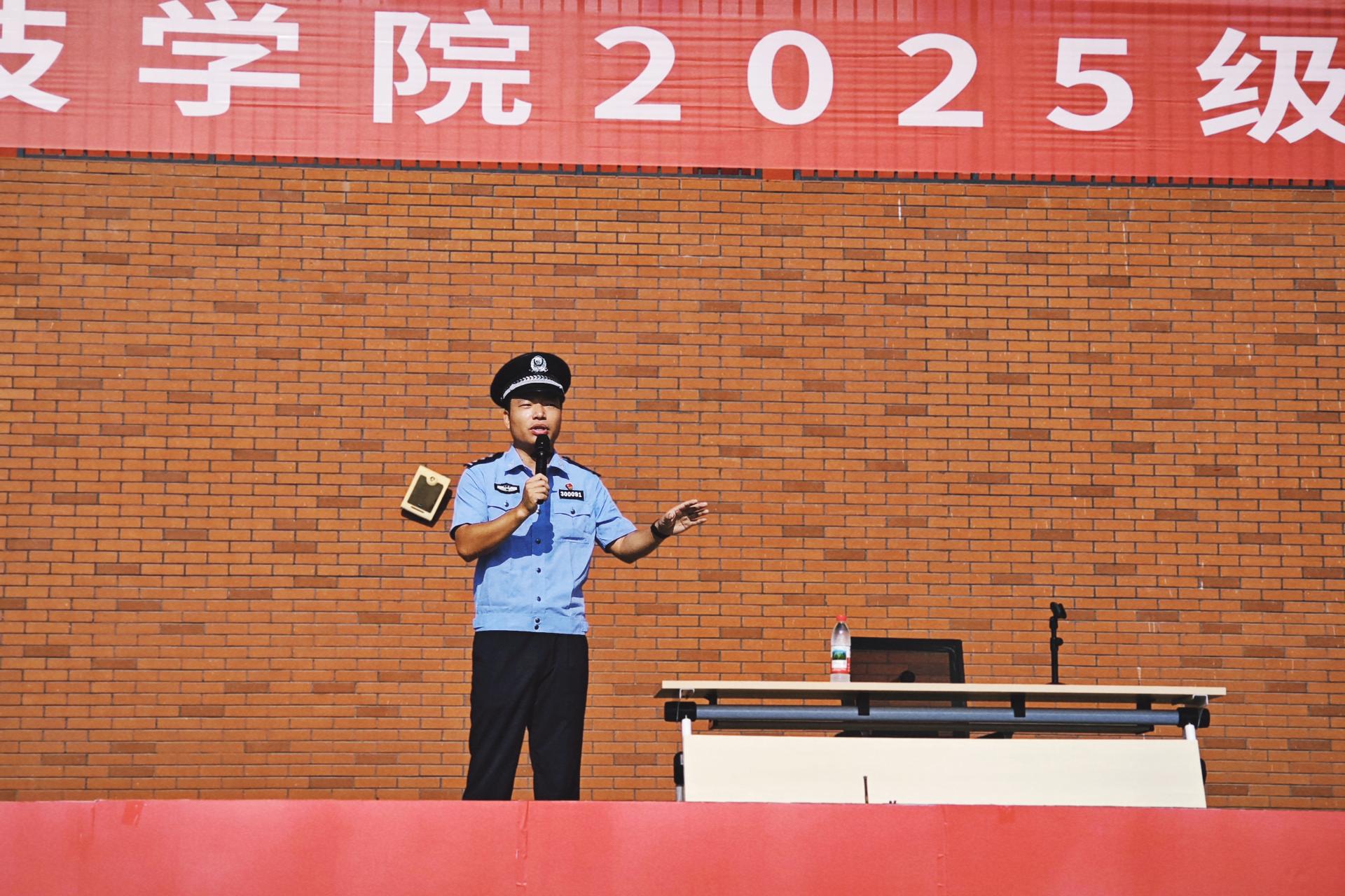 庙岭派出所所长邓明明为学生讲述提高防诈骗意识的重要性