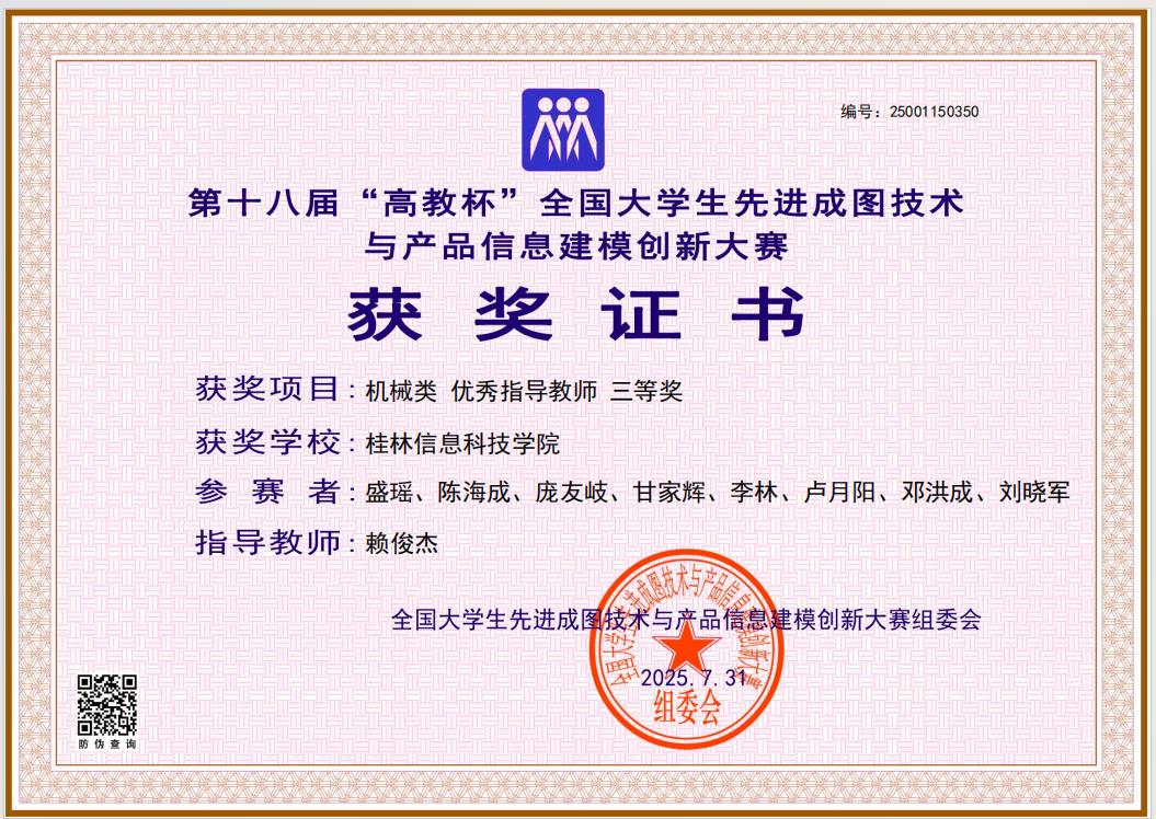 此次佳绩的取得,既是对我校学子专业能力的直接肯定,更是学校深化“以赛促教、以赛育人”理念的生动实践。学校将以此次赛事为契机,进一步强化工程图学课程建设与实践教学改革,持续提升学生工程素养与创新能力,为高素质应用型人才培养注入新动能。