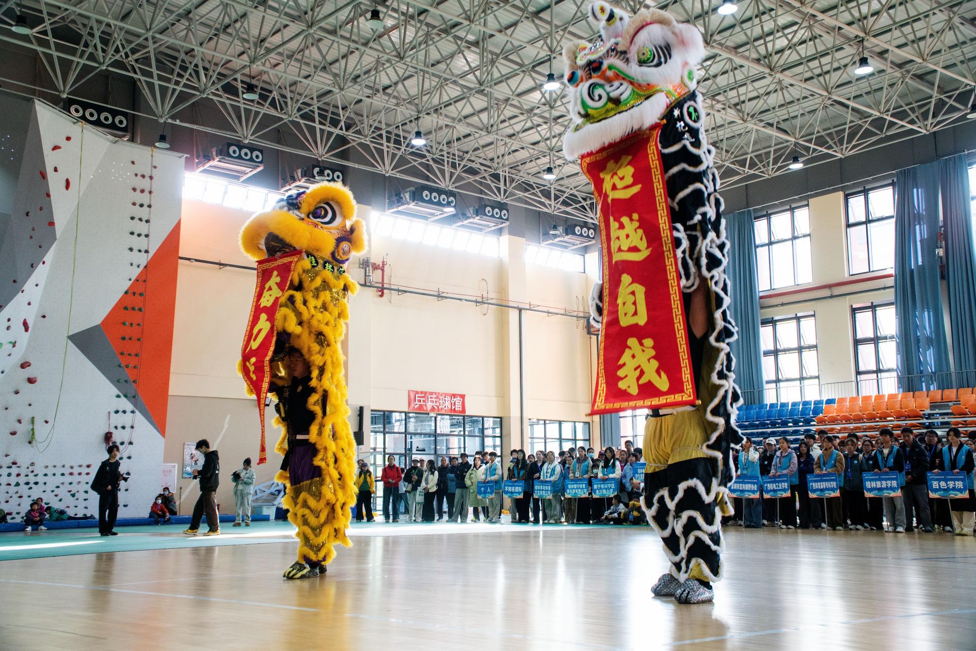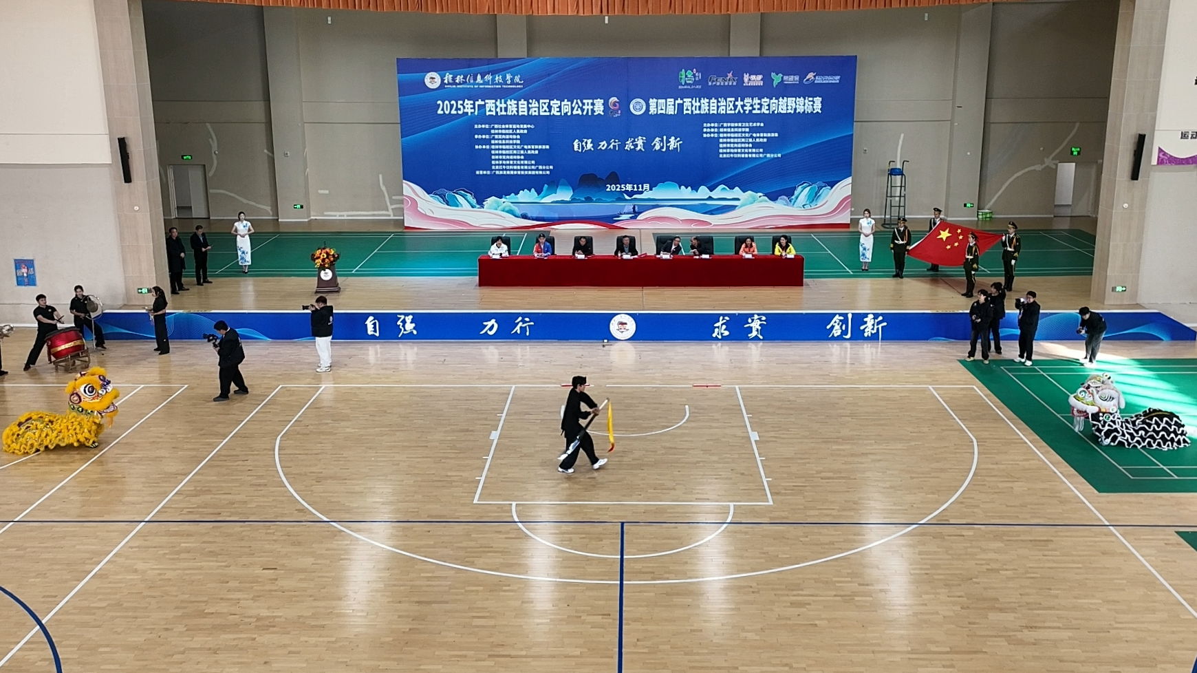 开幕式在桂林信息科技学院体育与健康学院的表演《武韵龙狮·定向争锋》中拉开序幕。节目创意融合传统体育与现代特色,威武雄狮与刚健武术相映生辉,展现了信科学子昂扬的精神风貌与卓越的专业素养。