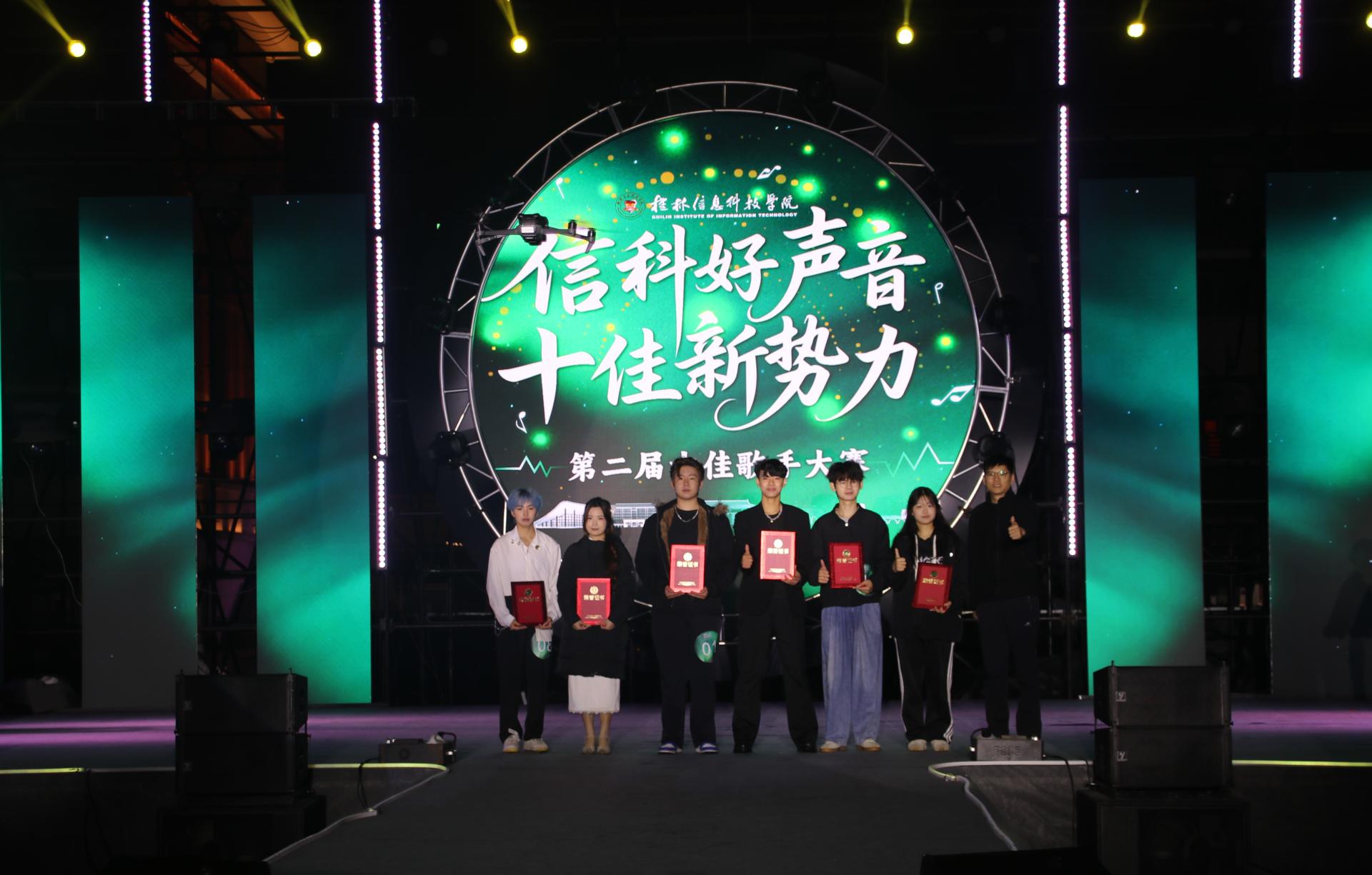 唱响青春序曲,共谱信科华章。12月7日晚,桂林信息科技学院第二届“信科好声音 十佳新势力”十佳歌手决赛在田径场燃情开唱。学校副校长罗捷,纪委书记兼校长助理周璇出席活动,相关职能部门、各二级学院团组织负责人及兄弟院校学生代表近3000人齐聚,共赴这场音乐盛宴。
