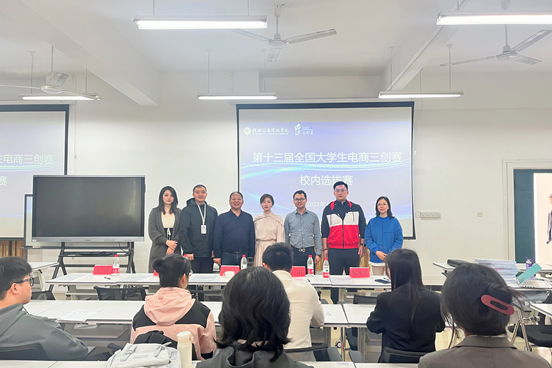 为更好地培养大学生创新思维、创业意识和创造能力,4月7日,第十三届全国大学生电子商务“创新、创意及创业”挑战赛(以下简称“三创赛”)校内选拔赛决赛在11210教室顺利举行,商学院院长严宗光、院长助理沈洋、电子商务教研室主任张振华,上海岚瑟服装设计有限公司总经理陈莉女士,桂林晓梦传媒有限公司总经理梁钊源先生等出席活动并担任大赛评委。