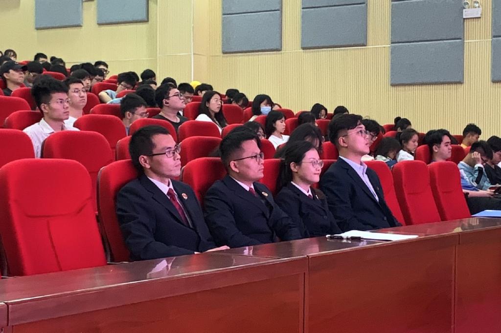 为增强我院学生国家安全意识,自觉维护国家安全。4月15日,电子工程学院于51206报告厅开展“全民国家安全教育日”送法进校园活动,活动由学院分团委副书记朱济亨主持,桂林市公安局七星分局国内安全保卫大队副大队长诸葛明月担任主讲人,七星区人民检察院第一检察部主任徐启良、未成年人检察工作办公室主任石钧文、未成年人检察工作办公室副主任周雅萍出席本次活动,我院各年级团员共150人参加本次活动。