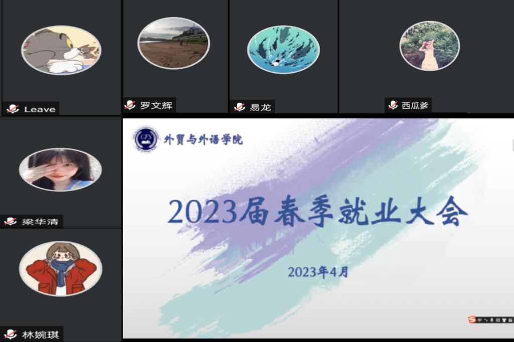 为调动毕业生的就业积极性,4月18日,外贸与外语学院通过腾讯会议召开2019级毕业生春季就业工作推进会,会议由2019级辅导员蒋勇主持,全体毕业生参加会议。