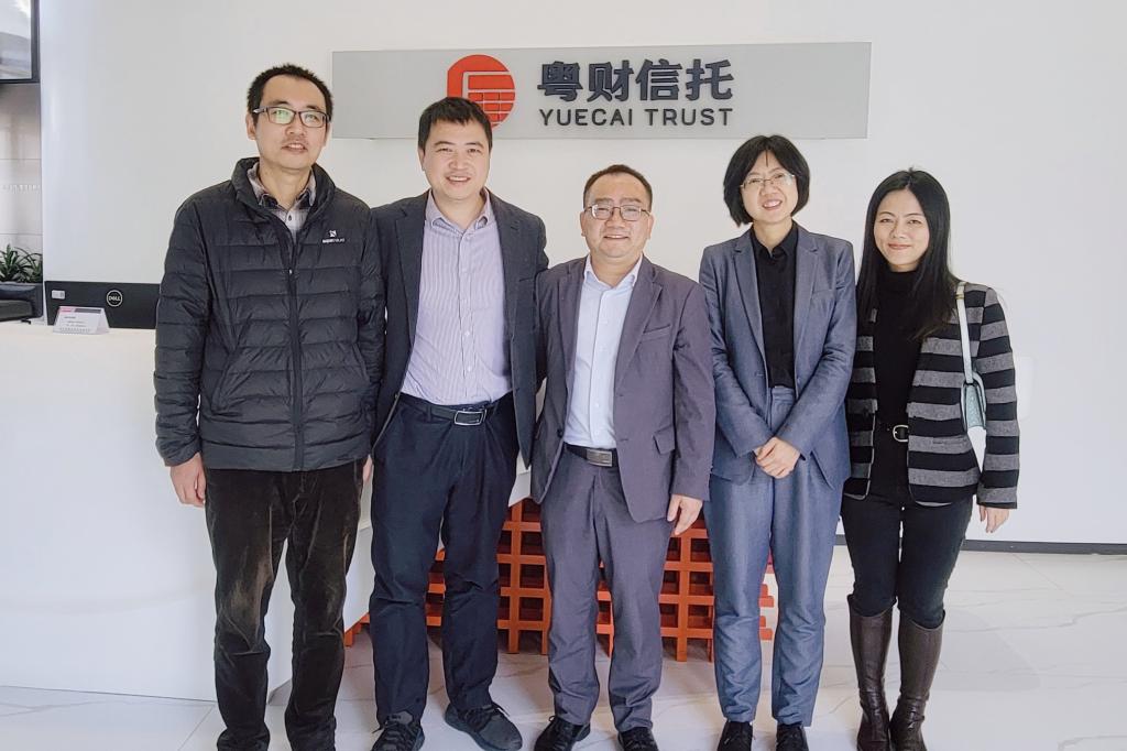 12月8日,商学院副院长(主持工作)罗志明带领金融科技教研室教室一行四人,赴广州走访广东粤财信托有限公司(广东省唯一省属国有信托机构)、TCL金服控股(TCL集团旗下金融板块)两家企业,就金融科技专业建设与发展、人才培养方案、产学研一体化推进等方面进行走访交流。
