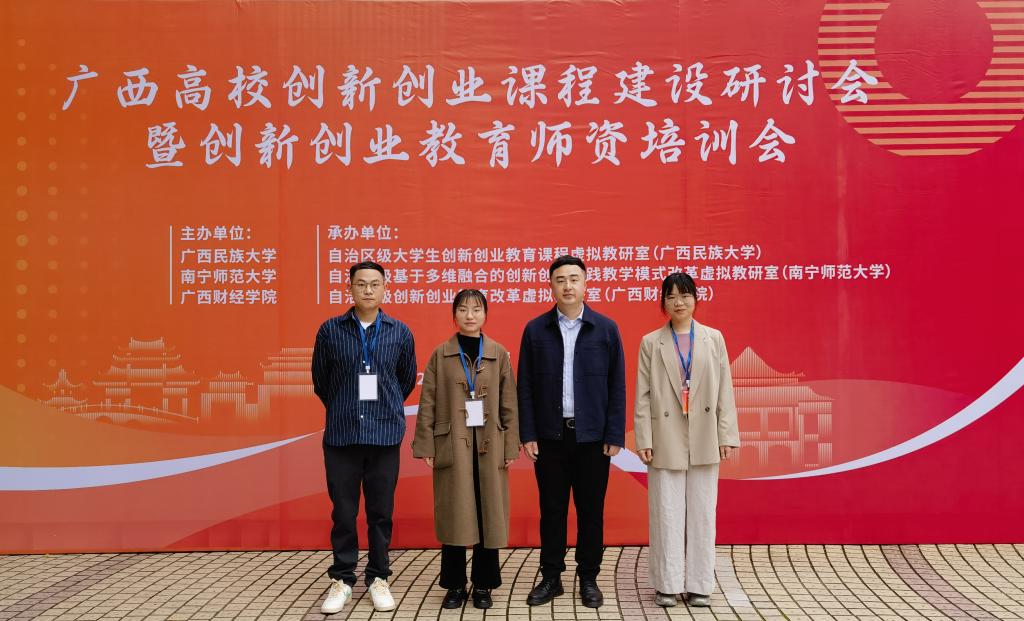 3月23日,我校创新创业课程教师代表一行4人赴广西民族大学参加由广西民族大学、南宁师范大学和广西财经学院联合主办的广西高校创新创业课程建设研讨会暨师资培训会。此次研讨会旨在贯彻全区高等学校本科教育工作会议精神,围绕“产教融合”和“数字教育”两大主题,探讨广西高校创新创业教育改革新思路和新方法,200余名广西高校教师代表参加了此次研讨会。