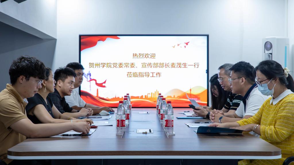 5月27日,贺州学院党委常委、宣传部部长麦茂生一行到我校参观座谈,加强宣传思想文化工作方面的指导交流。学校党委委员、党群事务部部长王南萍及宣传部老师参加座谈会。