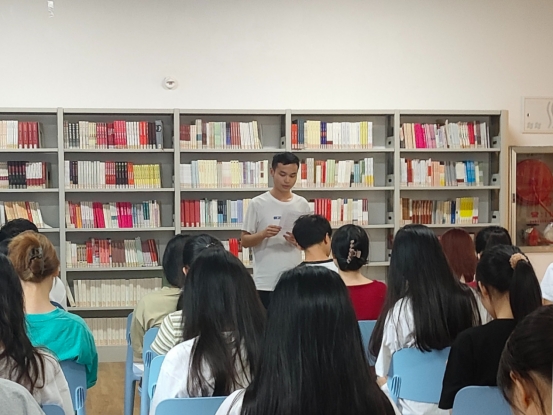 6月18日下午,由图书馆组织师生参加的六月线下读书会顺利在图书馆二楼主题阅读区举办,当天读书会的主题为“如何挑选一本书——公共演讲与自信表达”,旨在激发广大读者的阅读兴趣,拓宽知识面,提升个人素养,促进文化交流与分享,以创新驱动为讲座与培训工作赋能增效,助推图书馆事业高质量发展。主讲人为图书馆肖莹莹老师,此次活动还邀请了四位同学按照任务要求分享他们所选书籍的心得体会并根据评价量规打分。