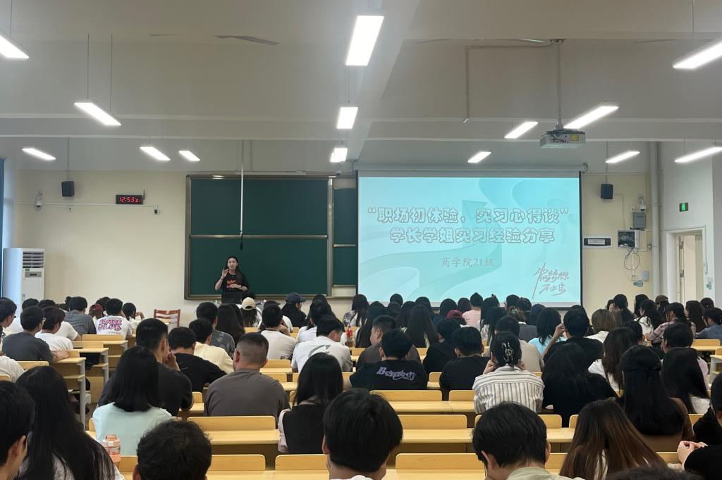 活动伊始,李紫嫣同学从在企业实习中的经历、体会以及对学弟学妹的期望等方面进行分享。她表示,实习是大学生将所学知识与实践相结合的重要途径,也是提前了解职场文化、锻炼职业能力的关键阶段;实习期间最大的收获是学会了如何与团队成员有效沟通,并强调了团队合作在职场中的重要性。她建议学弟学妹们在实习期间要积极主动,多向同事请教,要保持积极的心态,勇于面对挑战,并学会从失败中汲取教训,注重培养自己的职业素养,不断提升自己的专业技能。会上,与会的同学们认真倾听,踊跃发言,积极互动。